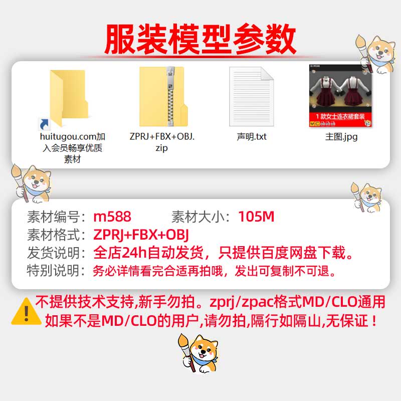 MD/Clo3D服装版片1款女士连衣裙套装衣服纸样3D素材Marvelous模型