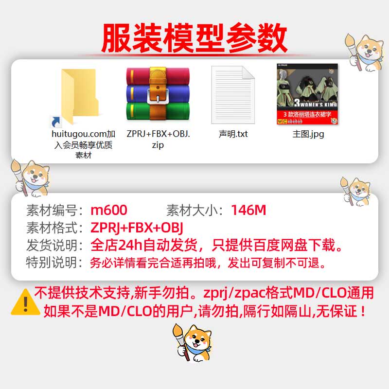 MD/Clo3D服装版片3款洛丽塔连衣裙字衣服纸样3D素材Marvelous模型