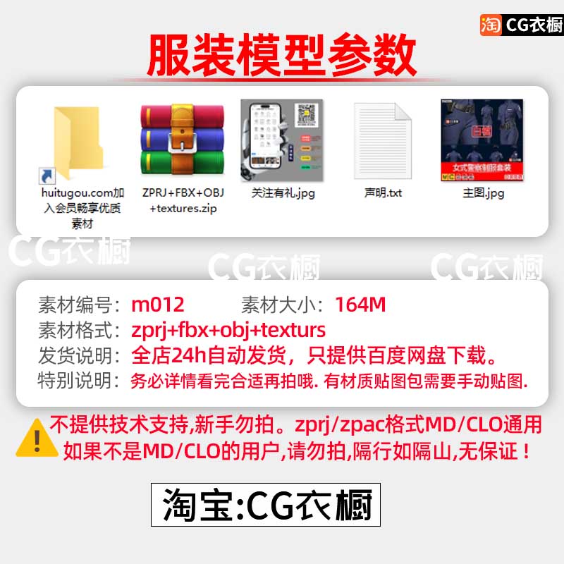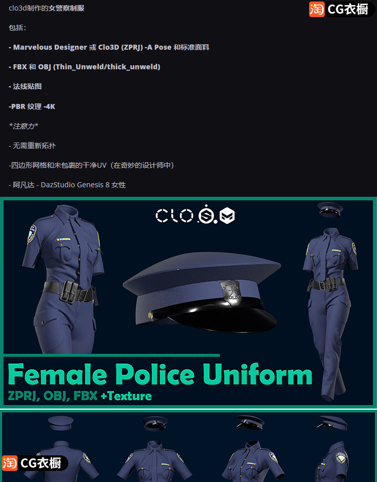 MD服装模型CLO3D女式警察制服套装Marvelous衣服打版纸样工程文件