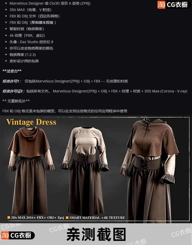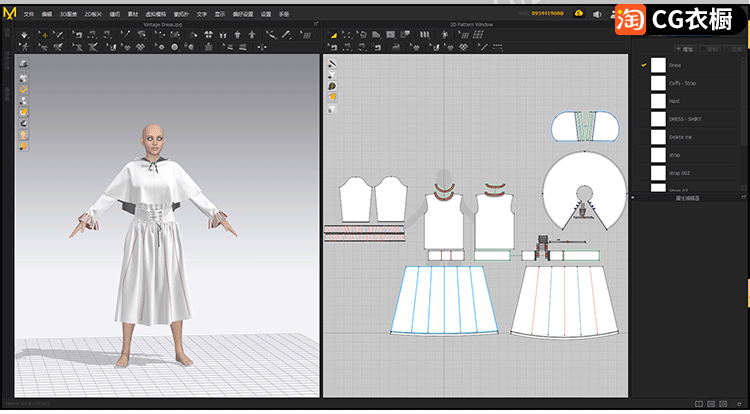 CLO服装打版素材MD复古连衣裙套装CLO3D古装纸样版片3D模型OBJ