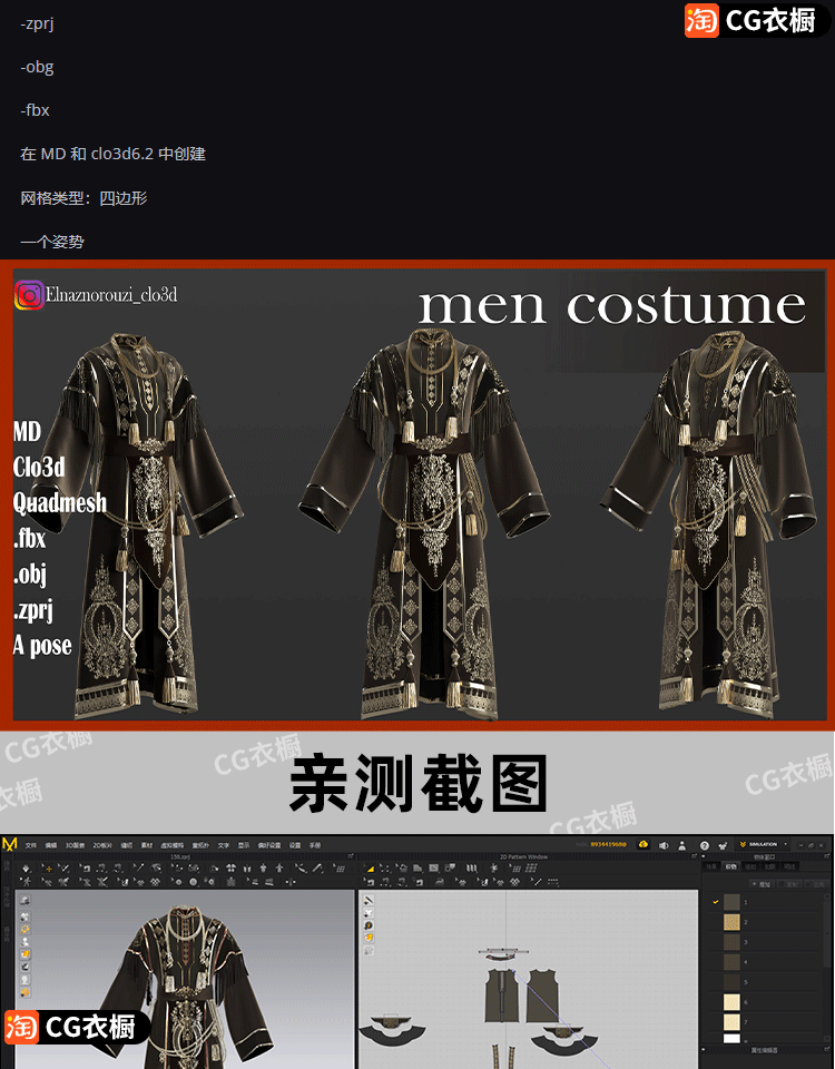 MD/CLO3D衣服纸样中国古代男士服装古风袍子男装ZPRJ工程源文件
