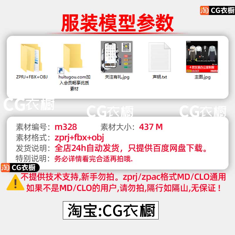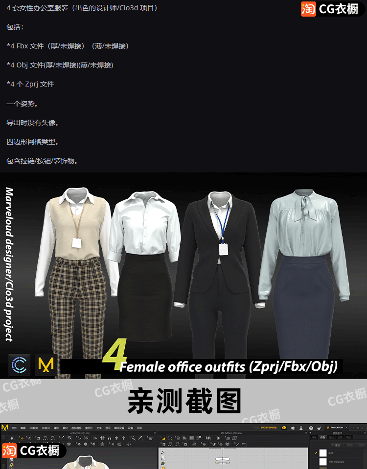 MD服装纸样CLO3D衣服4款女装办公室制服白领工作服女装ZPRJ工程