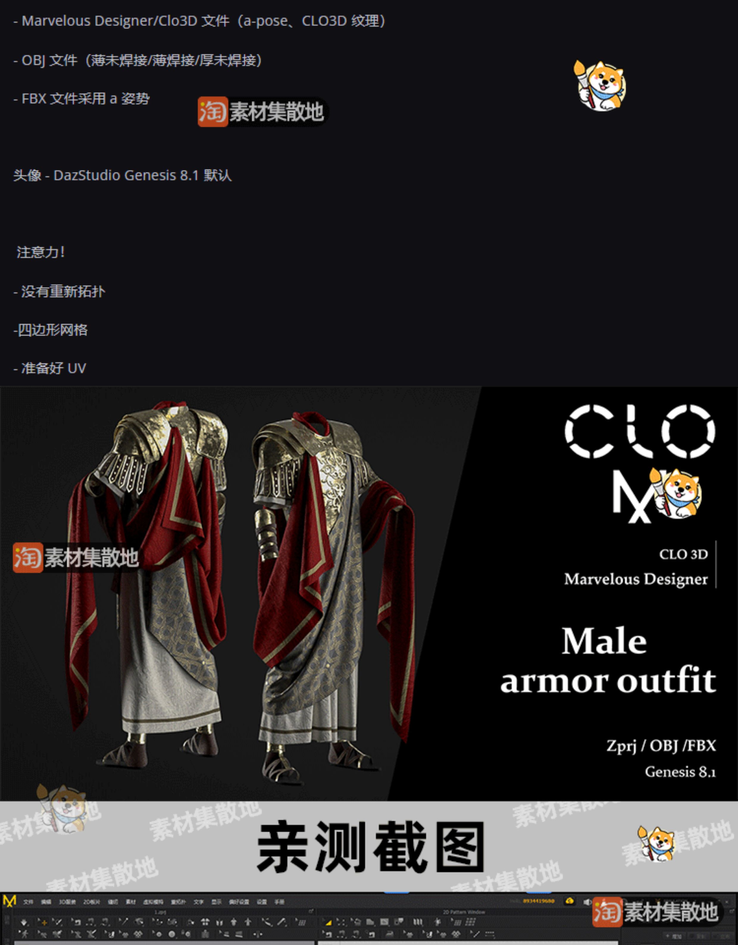 MD古希腊贵族男性服饰CLO盔甲装备服装衣服ZPRJ模型打版源文件OBJ