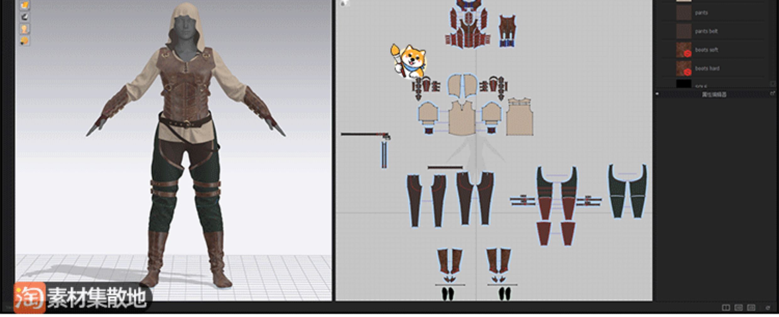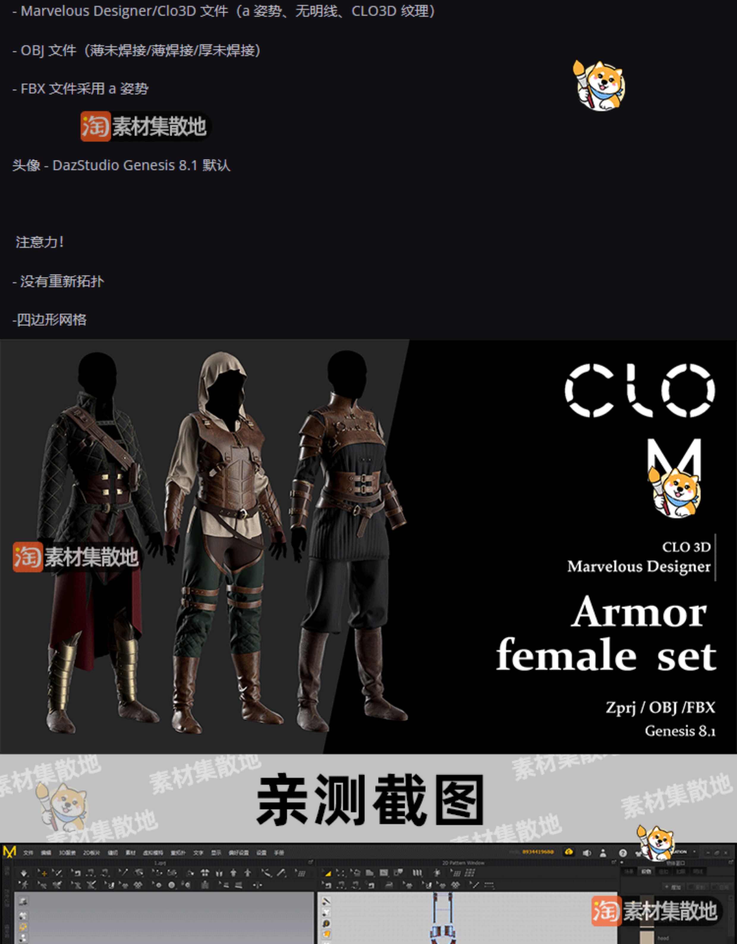 3款clo3d女性复古刺客套装制服皮甲长靴套装ZPRJ格式模型打版文件