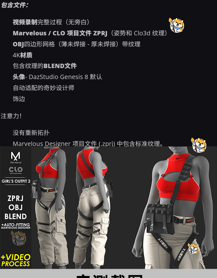MD服装clo3d纸样模型吊带长裤运动休闲套装3D素材带教程marvelous