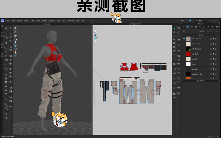 MD/Clo3D衣服模型1款吊带休闲裤女装套装服装纸样版片3D模型素材