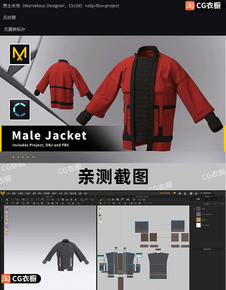 CLO3D衣服素材MD男性时尚夹克套装3D服装设计建模纸样ZPRJ模型OBJ
