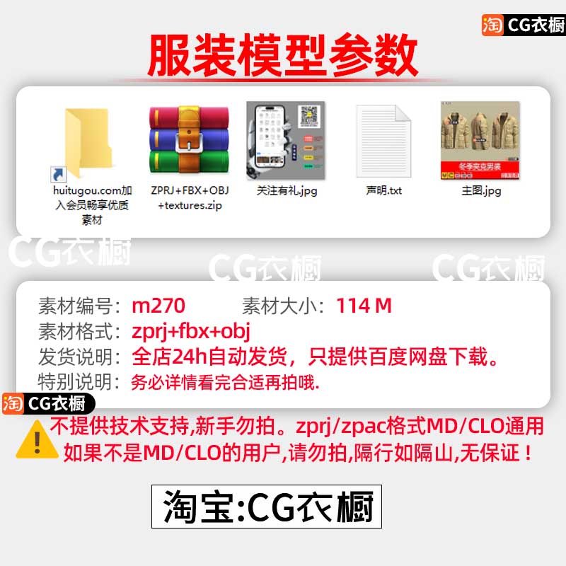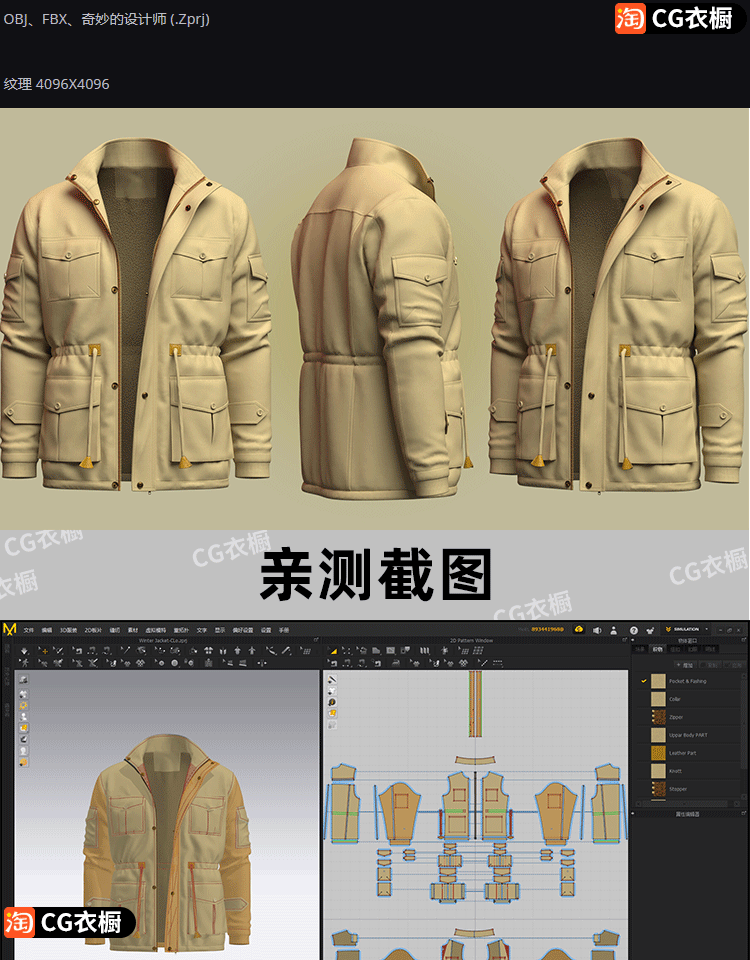 MD/CLO3D衣服模型冬季夹克男装厚外套上衣ZPRJ纸样工程源文件素材