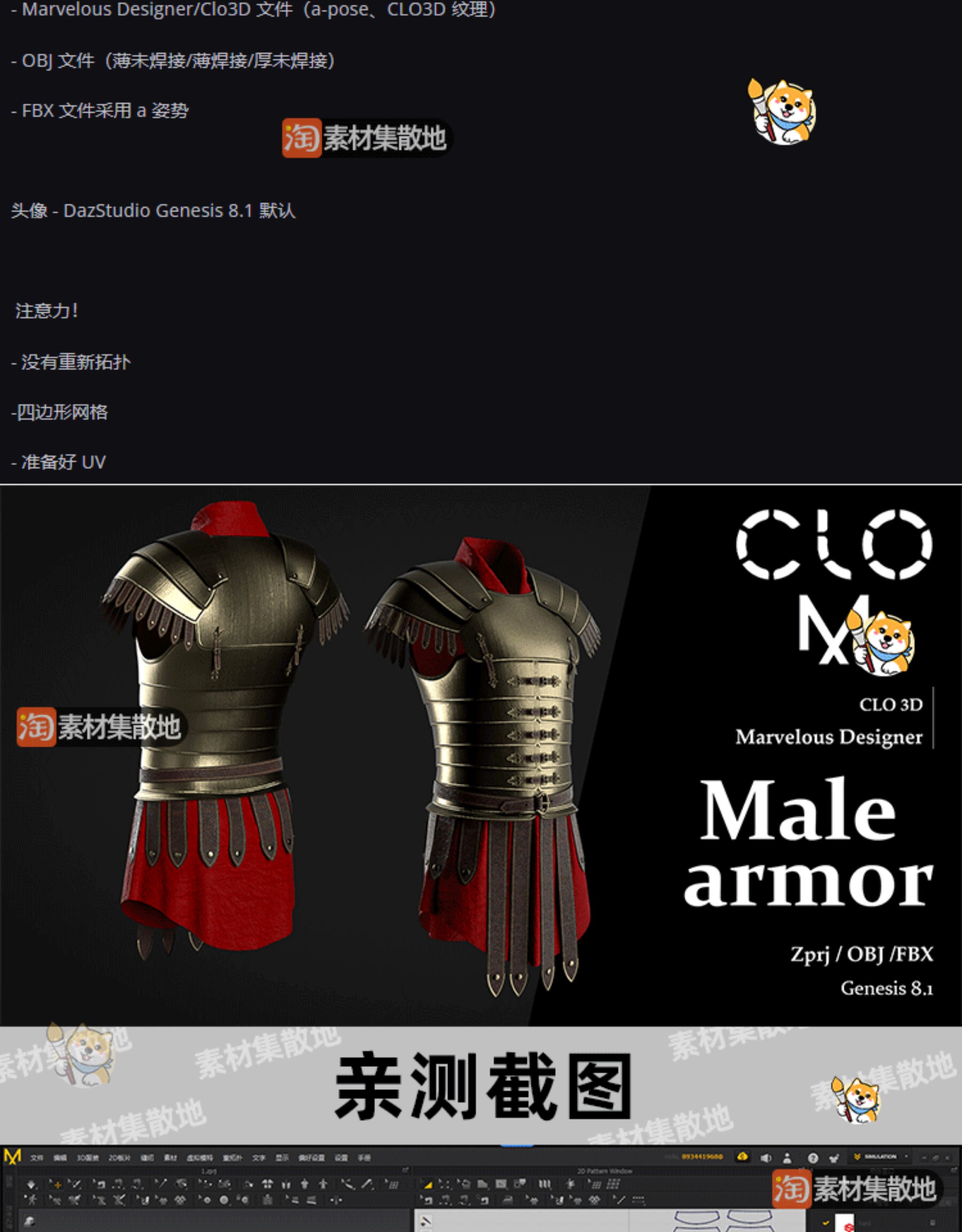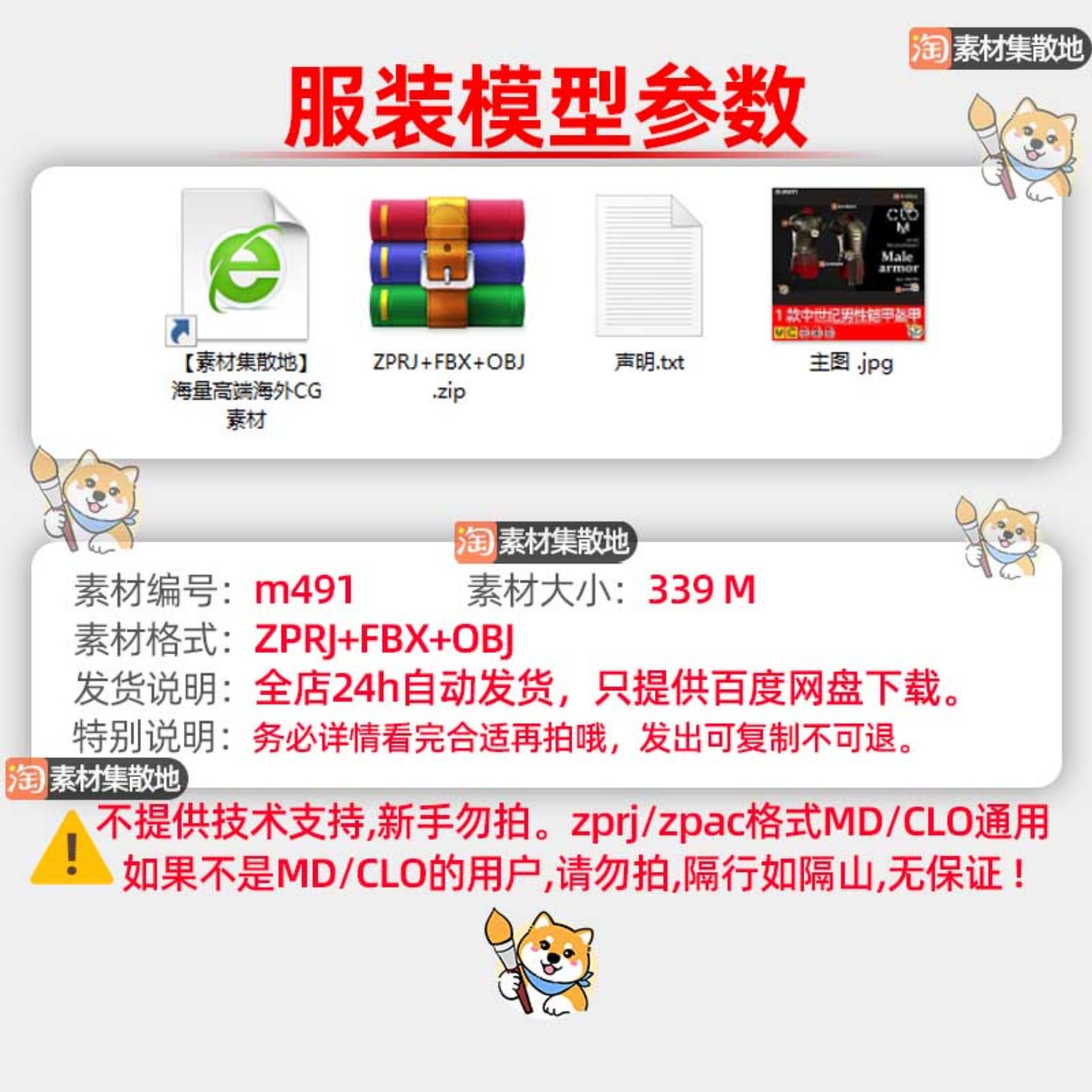 中世纪男性铠甲外套CLO3D盔甲上衣服饰ZPRJ模型打版纸样工程文件