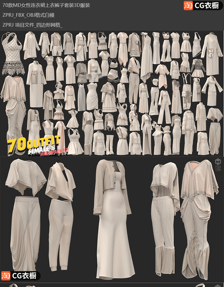 Marvelous/CLO项目70款女性连衣裙上衣裤子女装衣服基础版型合集
