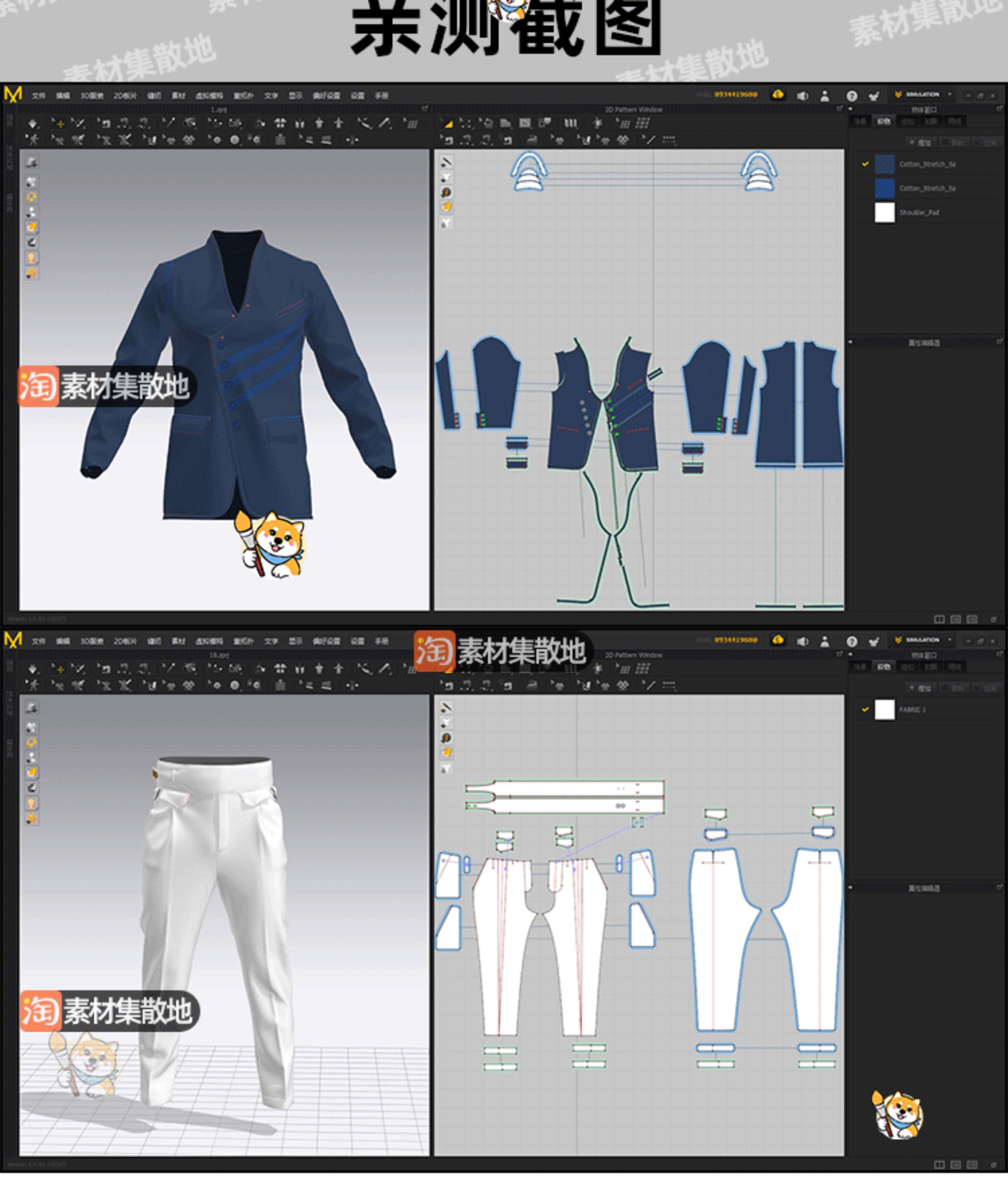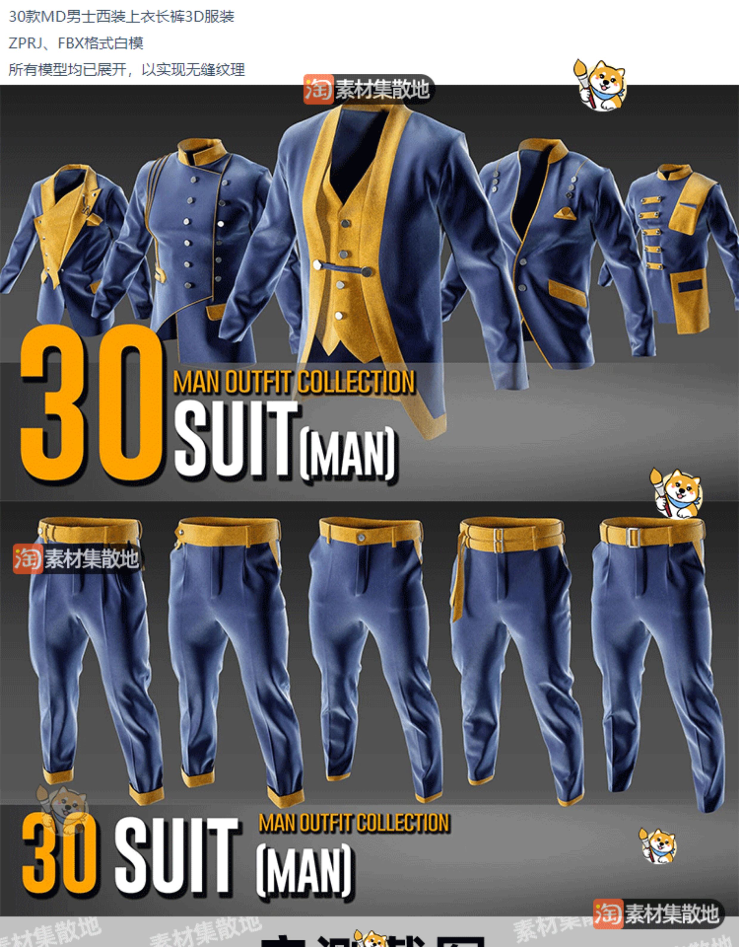 30款MD男士西装上衣长裤3D服装CLO外套服饰ZPRJ模型打版源文件FBX