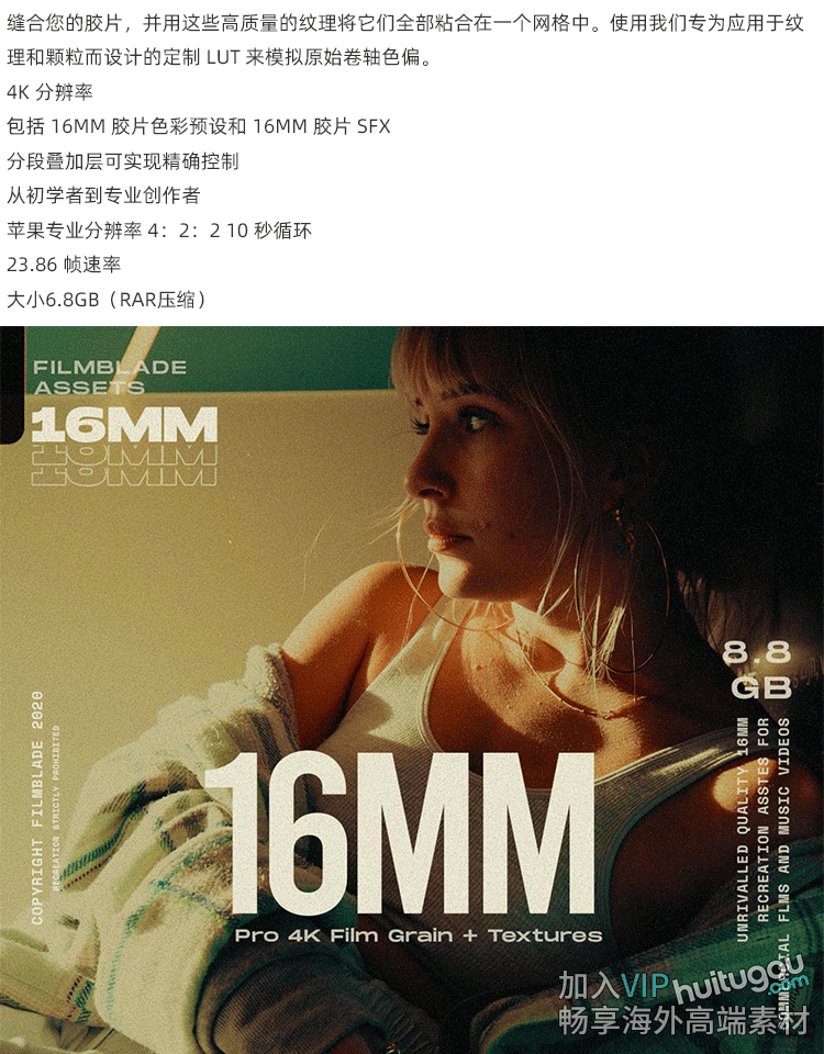 复古新趋势16MM电影胶片美学颗粒感纹理4K视频素材+LUT调色预设