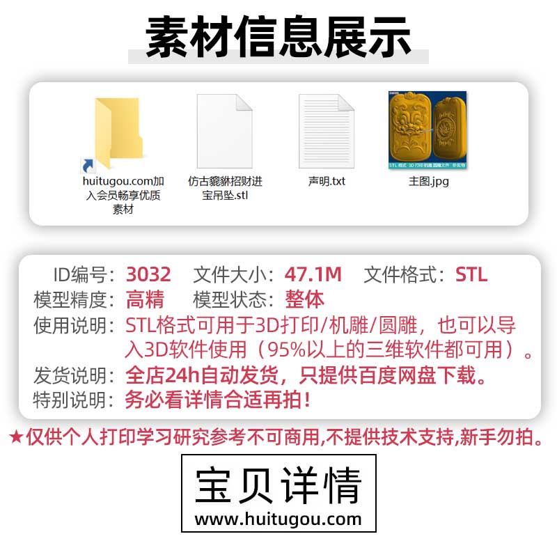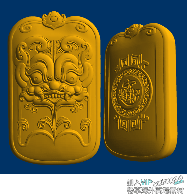 仿古貔貅无事牌平安牌立体图圆雕图STL文件三维3D打印雕刻模型图