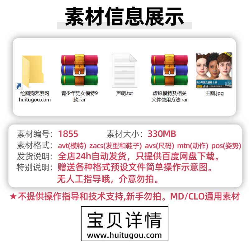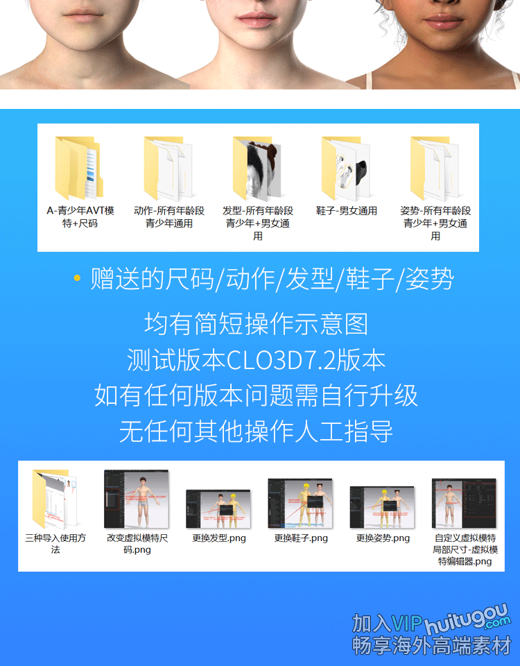 MD虚拟模特CLO3D青少年男女儿童模型送尺码动作发型鞋子姿势预设