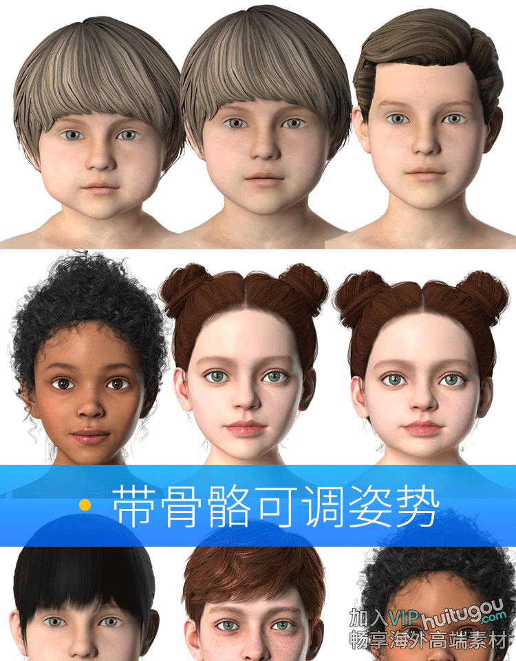 CLO3D婴儿虚拟模特MD儿童AVT模型带骨骼配套鞋子裙子发型pos姿势
