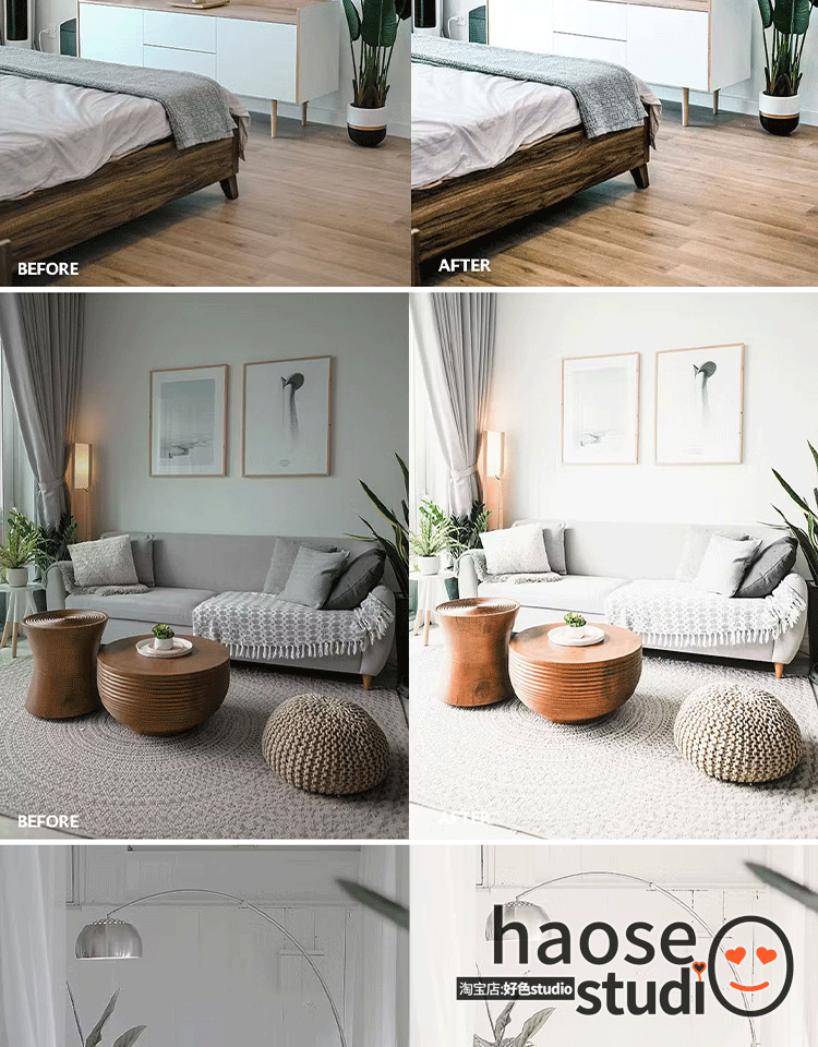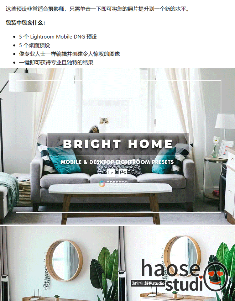 Lr预设PS滤镜调色lightroom预设室内明亮通透调色5款bright home