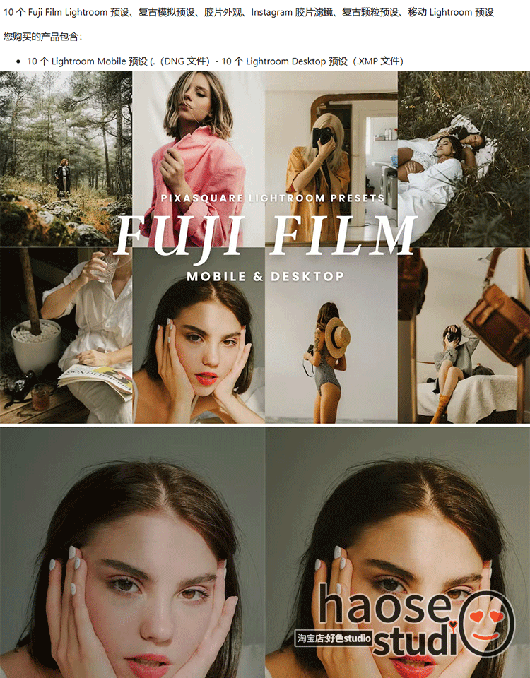 Lr调色预设PS滤镜修图 复古颗粒富士胶片人像调色10款Fuji Film