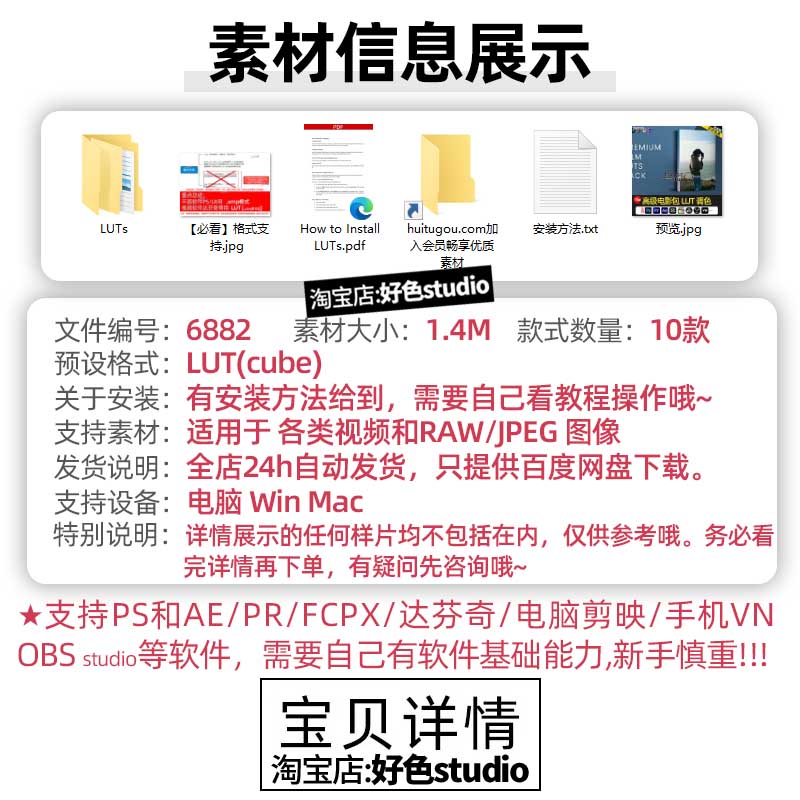 Pr剪映Ae达芬奇调色LUT预设 博主生活明亮LUT调色10款pet and i