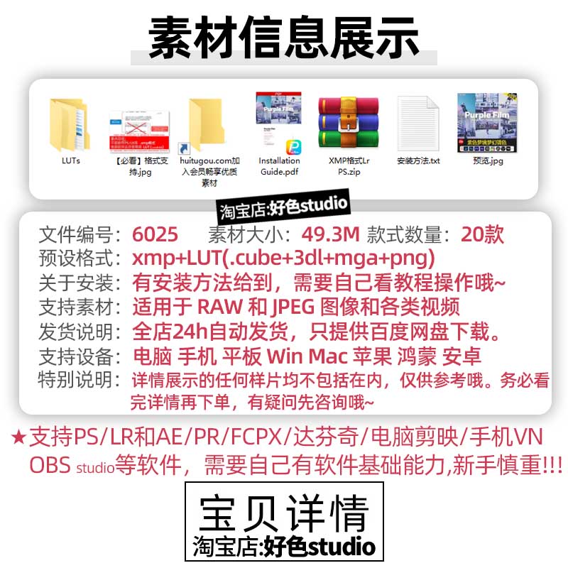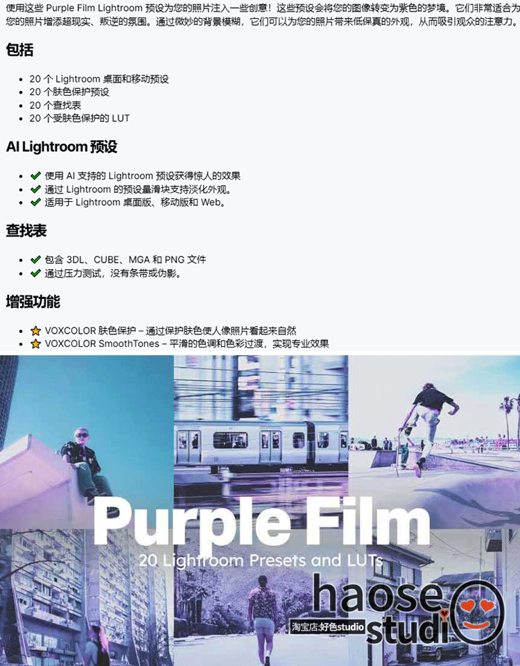 Lightroom调色预设LUT滤镜创意紫色梦境梦幻调色20款Purple Film