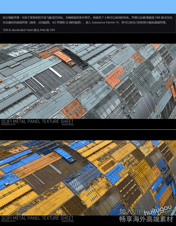 C4D Blender科幻墙板面板宇宙飞船空间站PBR纹理3款 Pt MAYA SP