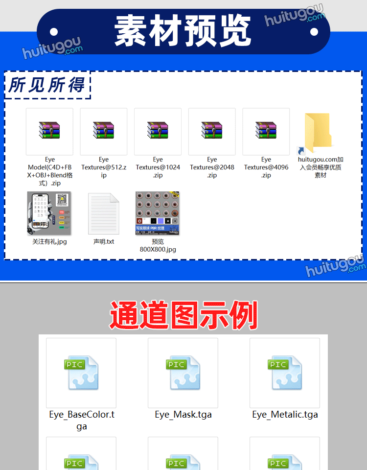 Blender写实眼球贴图PBR纹理15款 眼珠材质贴图素材带C4D模型OBJ