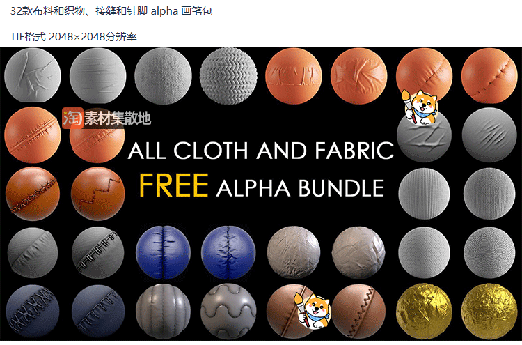 ZBrush阿尔法纹理32款布料皮革织物缝线针脚Alpha贴图tif格式素材