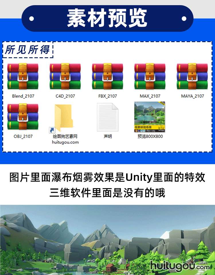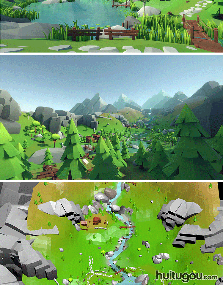 POLYGON山涧森林场景模型C4D峡谷Blend灌木植物自然风光FBX MAX