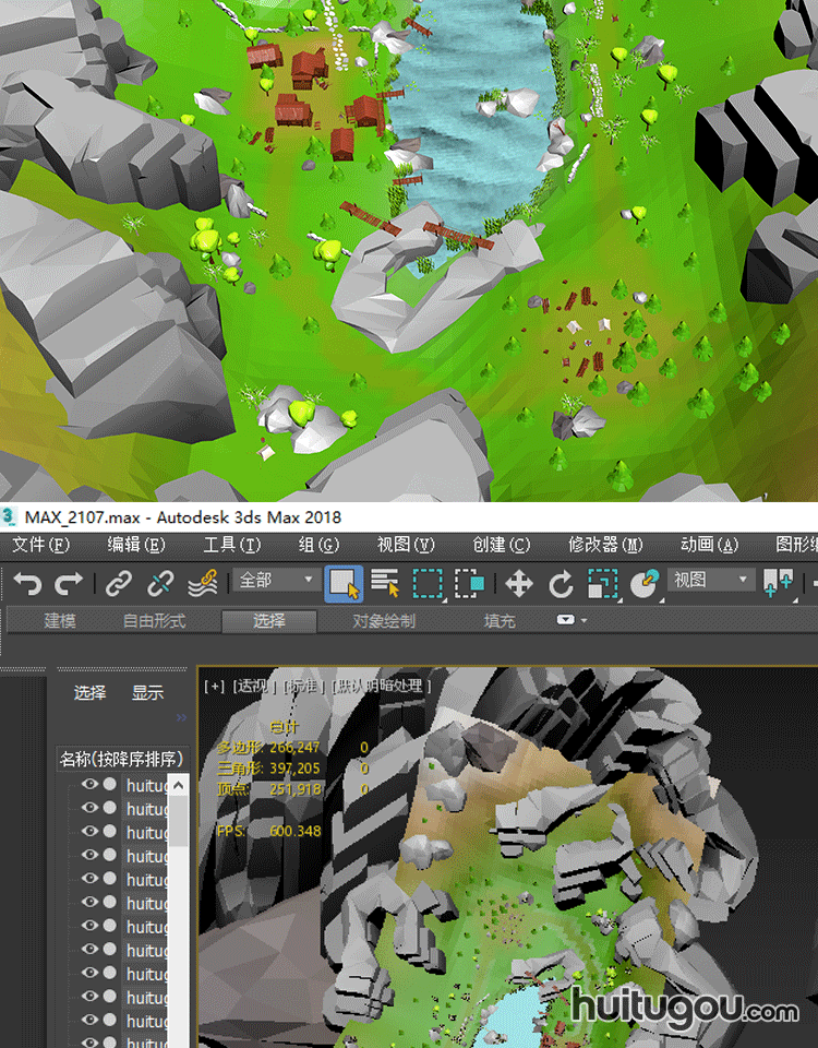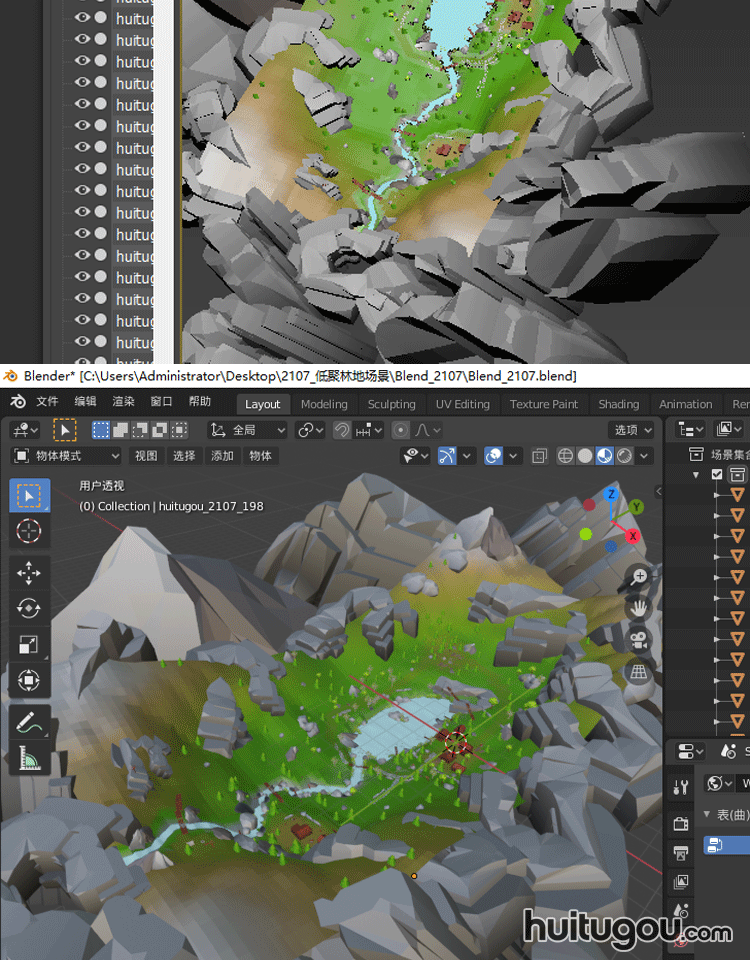 低面风格 山河湖泊场景C4D盆地Blend山岩MAX OBJ FBX山湖景色素材
