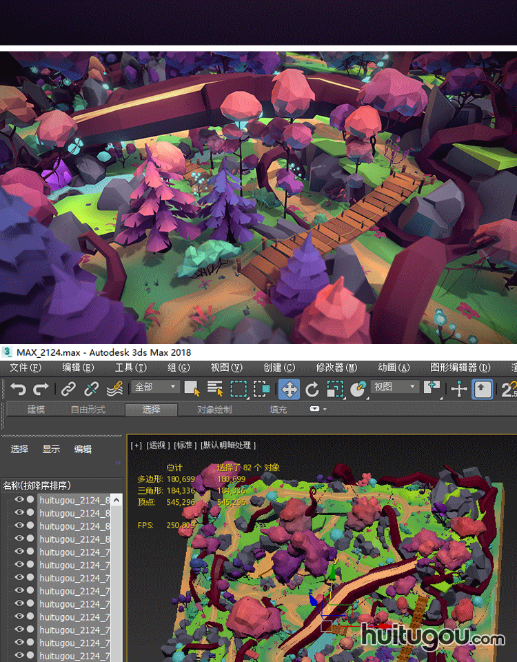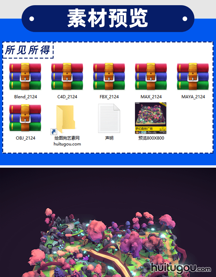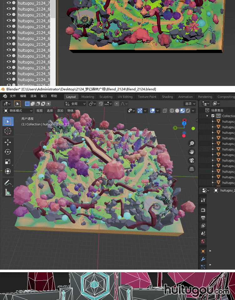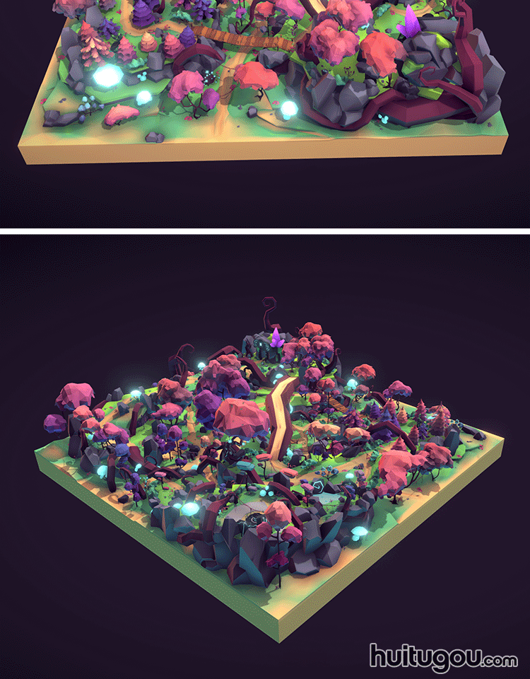 低面卡通 梦幻森林迷宫C4D科幻植物乐园Blend郊野公园FBX OBJ素材