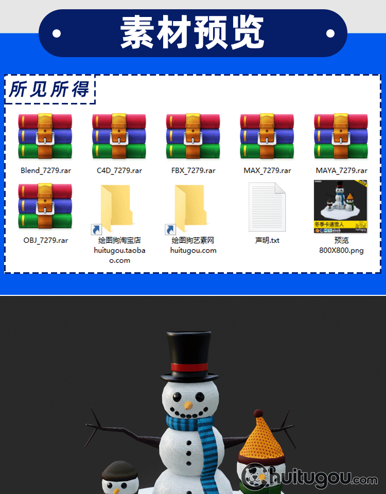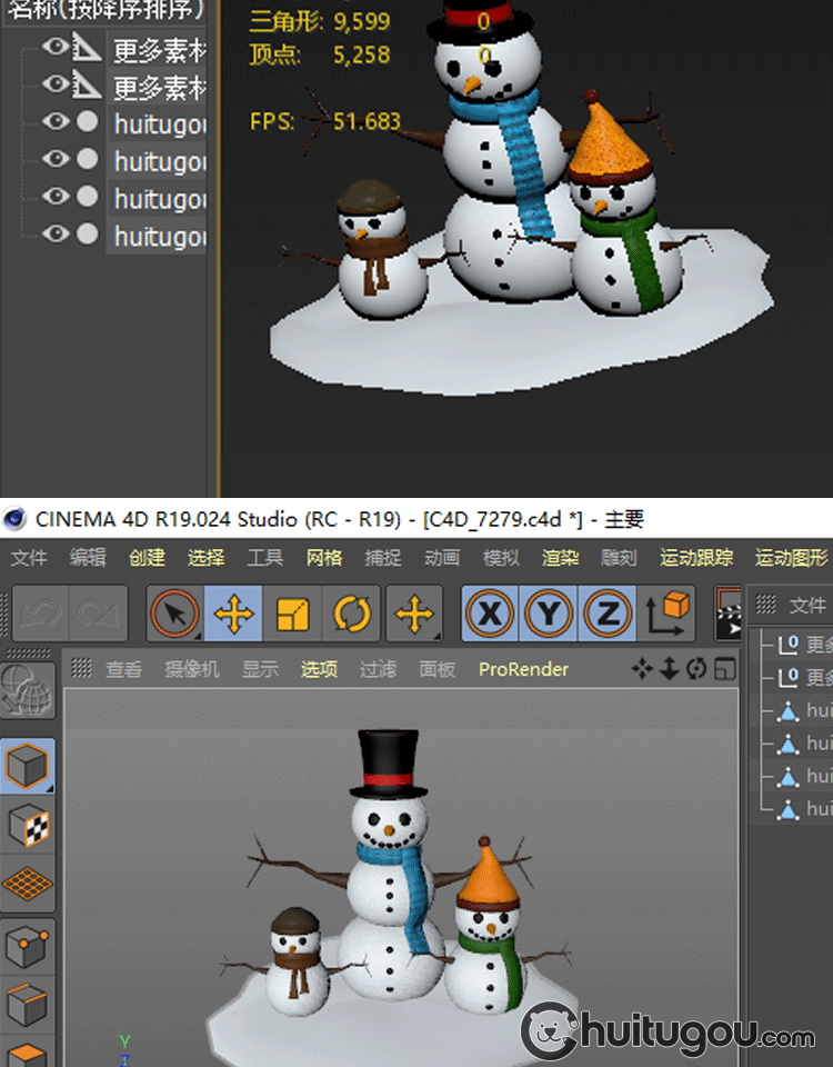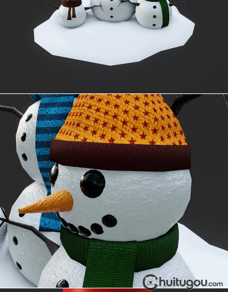 C4D低面PBR雪人3D模型MAYA冬季雪堆圣诞雪人FBX建模渲染3D素材OBJ