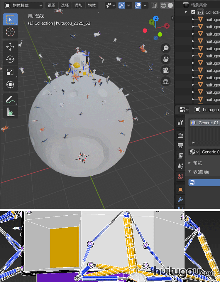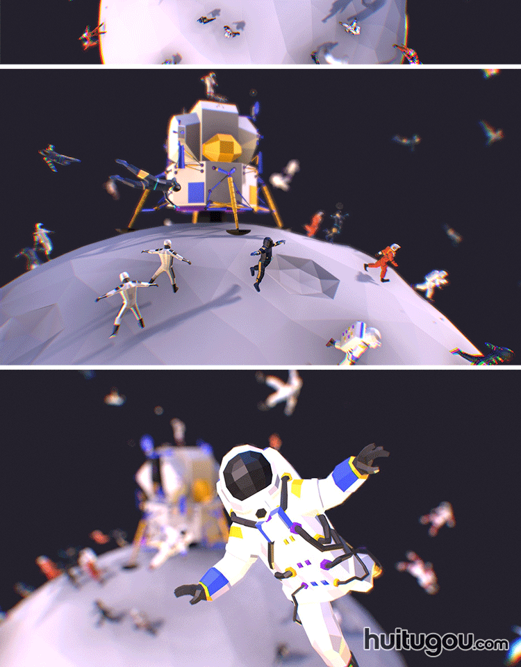 低面风格宇航员C4D月球空间站Blender探索宇宙太空MAX FBX OBJ mb