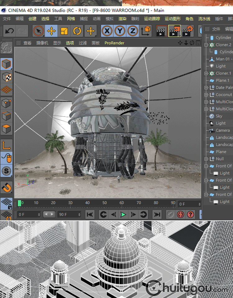 MAX科幻基地场景模型C4D太空殖民地建筑设备模块FBX建模渲染素材