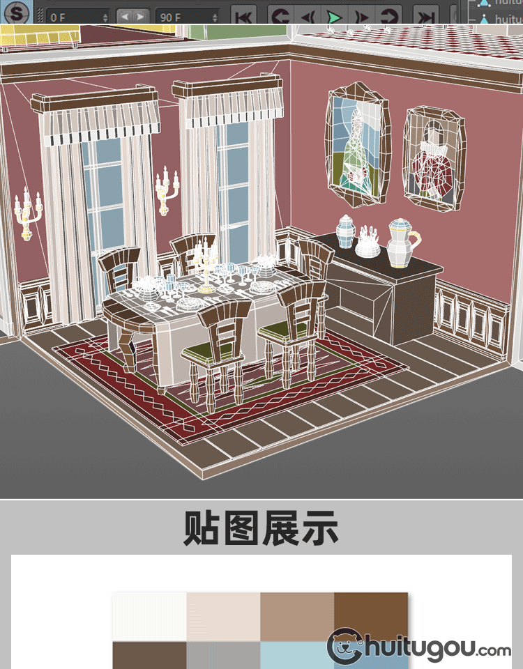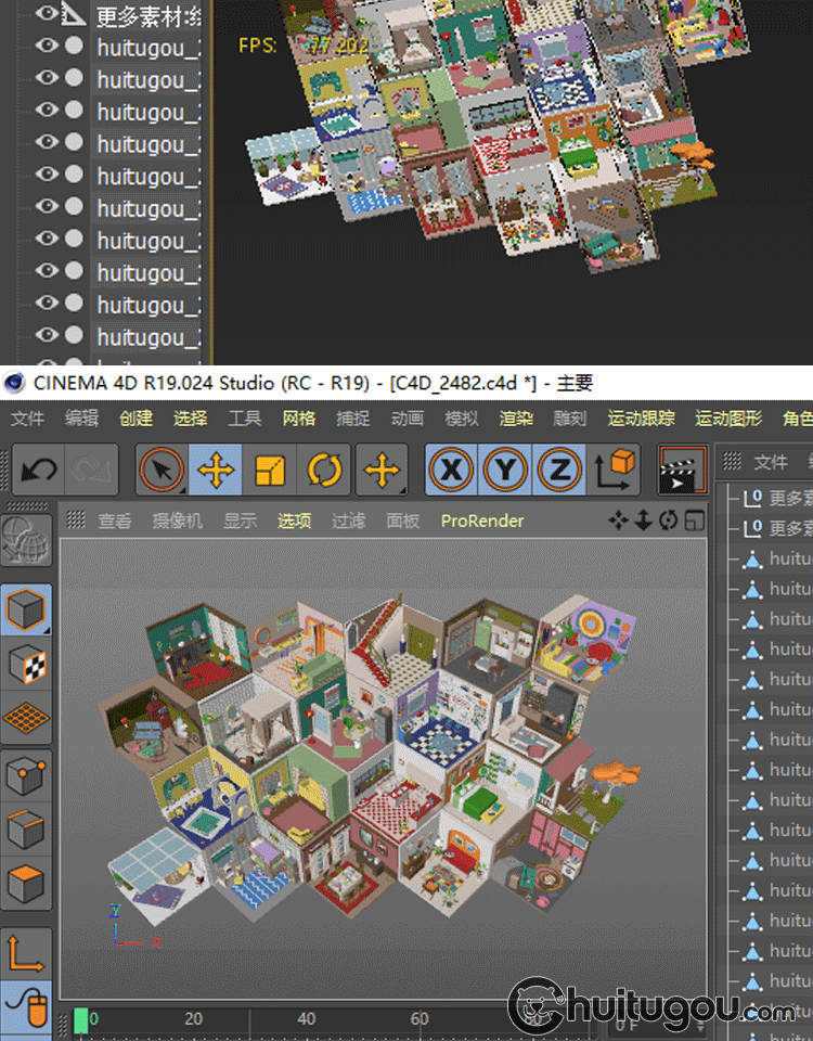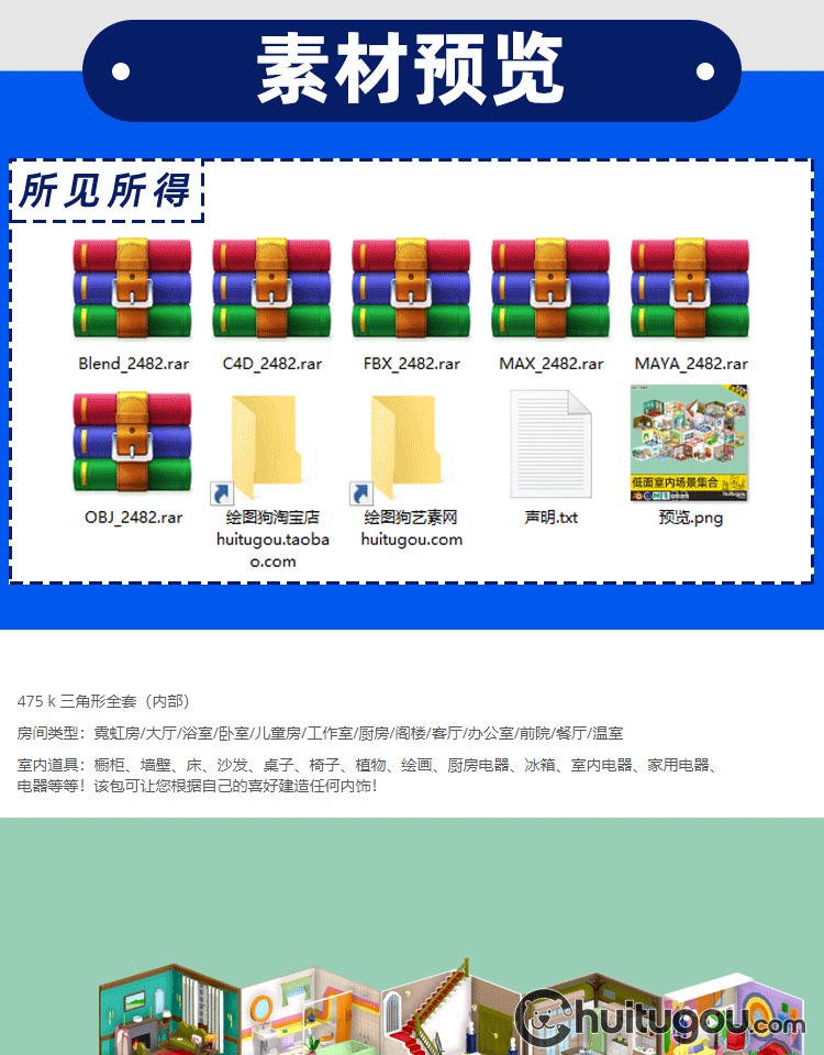 Blend卡通复古低面房间C4D模型MAYA前院子花园家电家具FBX素材3D