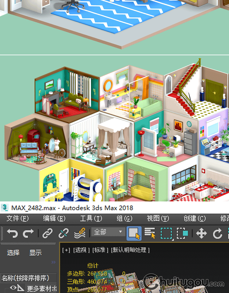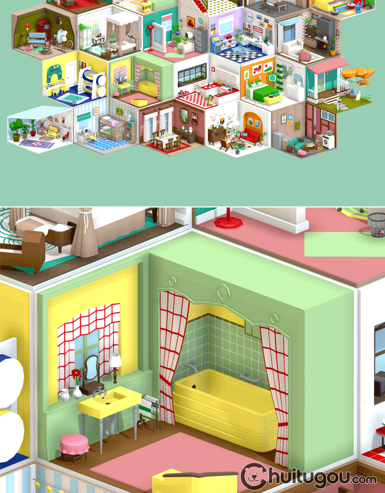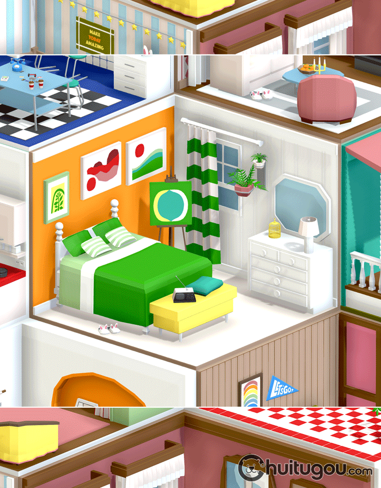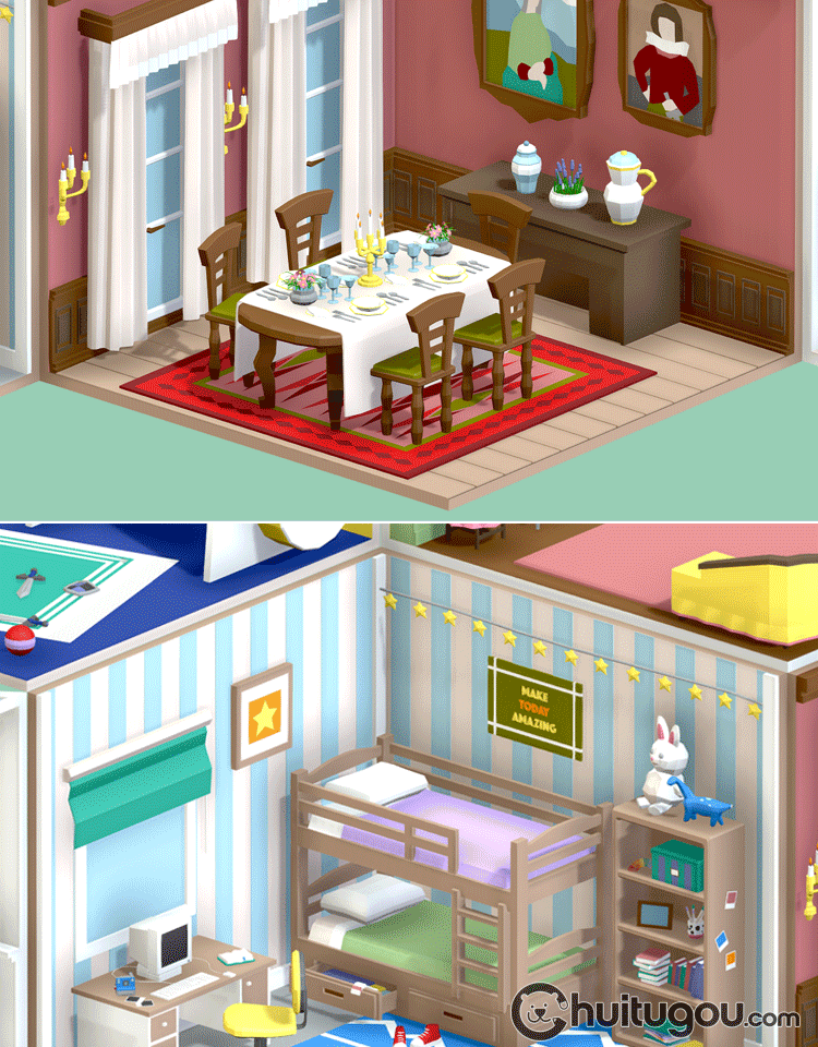第三季低面房间屋子C4D卡通花园阳台吧台客厅儿童房Blend MAX素材