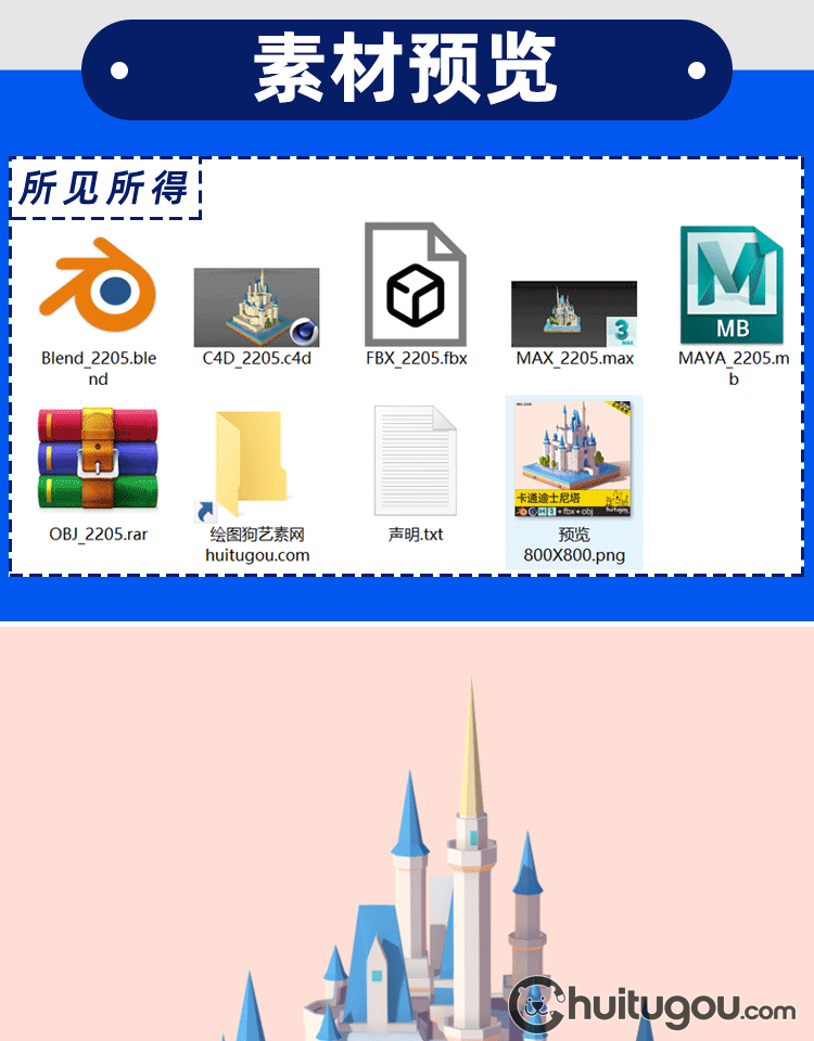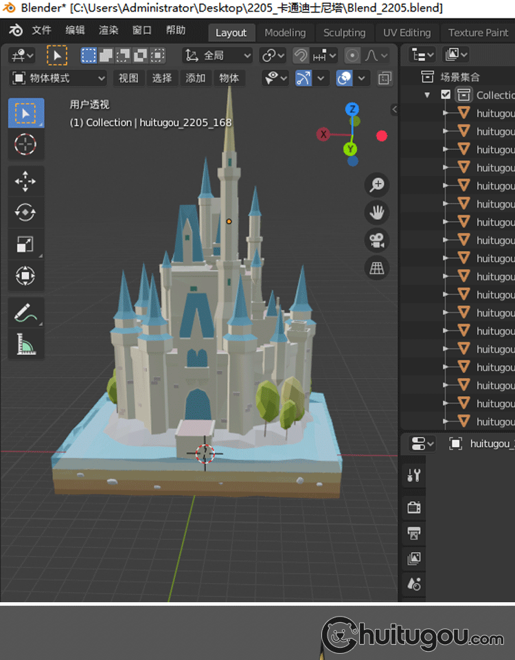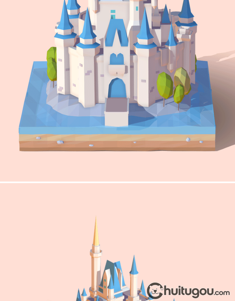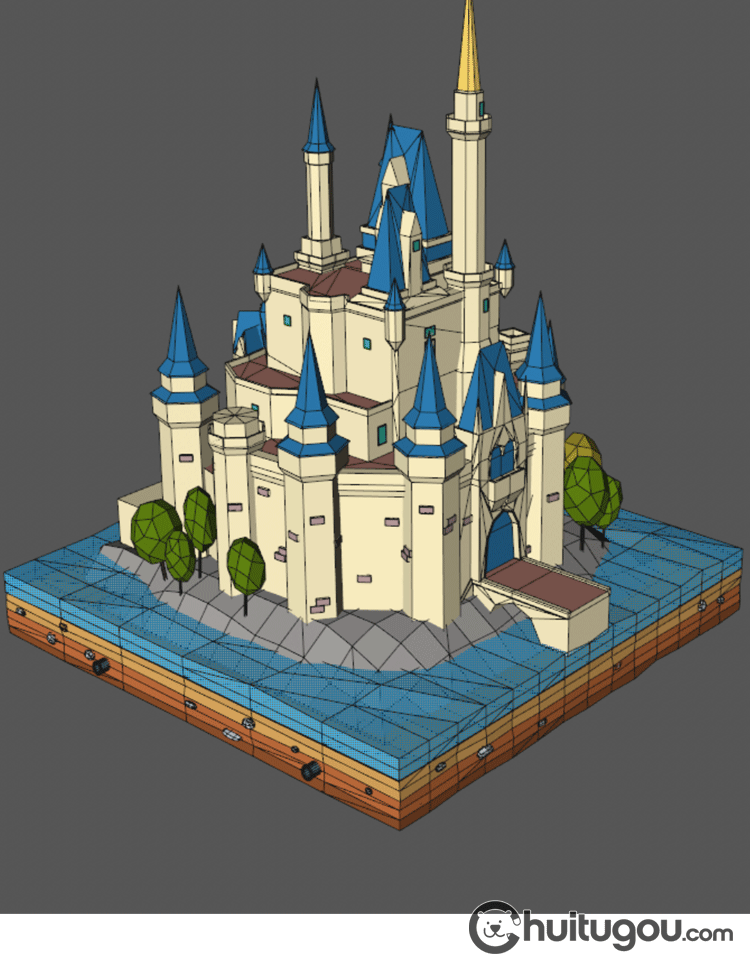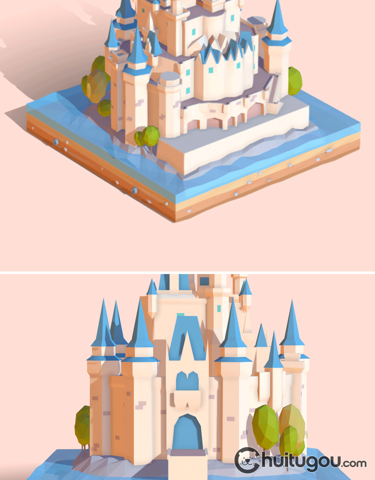 低多边形风格3D迪士尼城堡C4D场景Q版Blender卡通MAYA建筑MAX素材