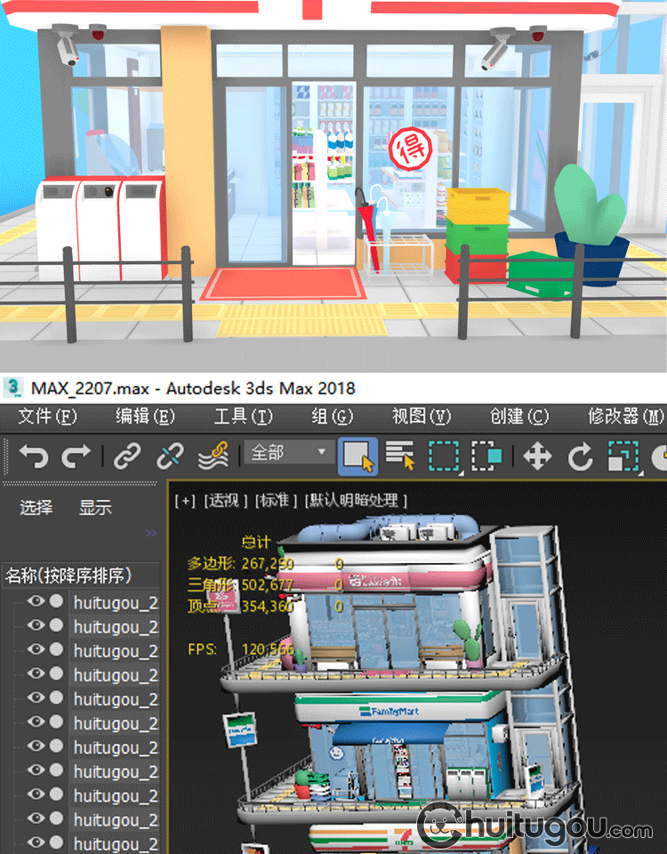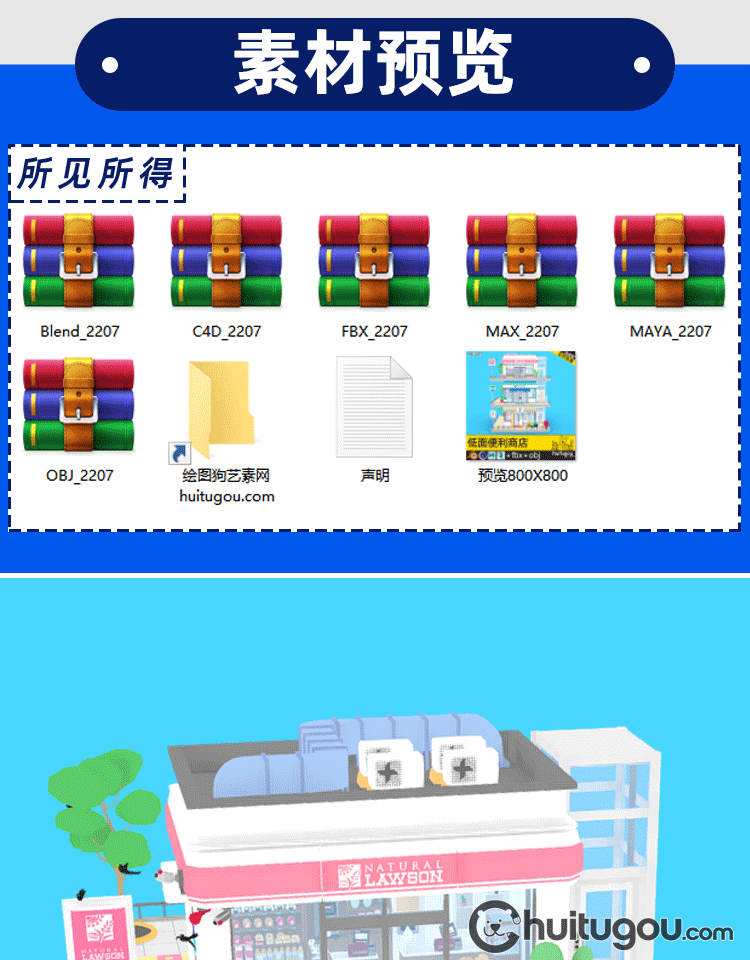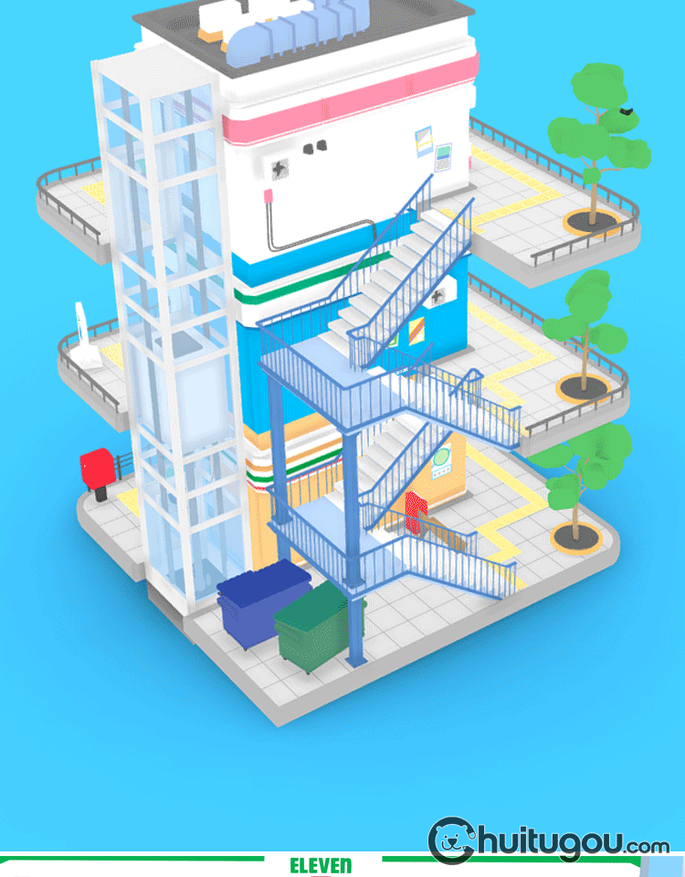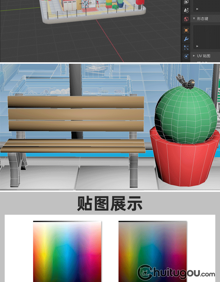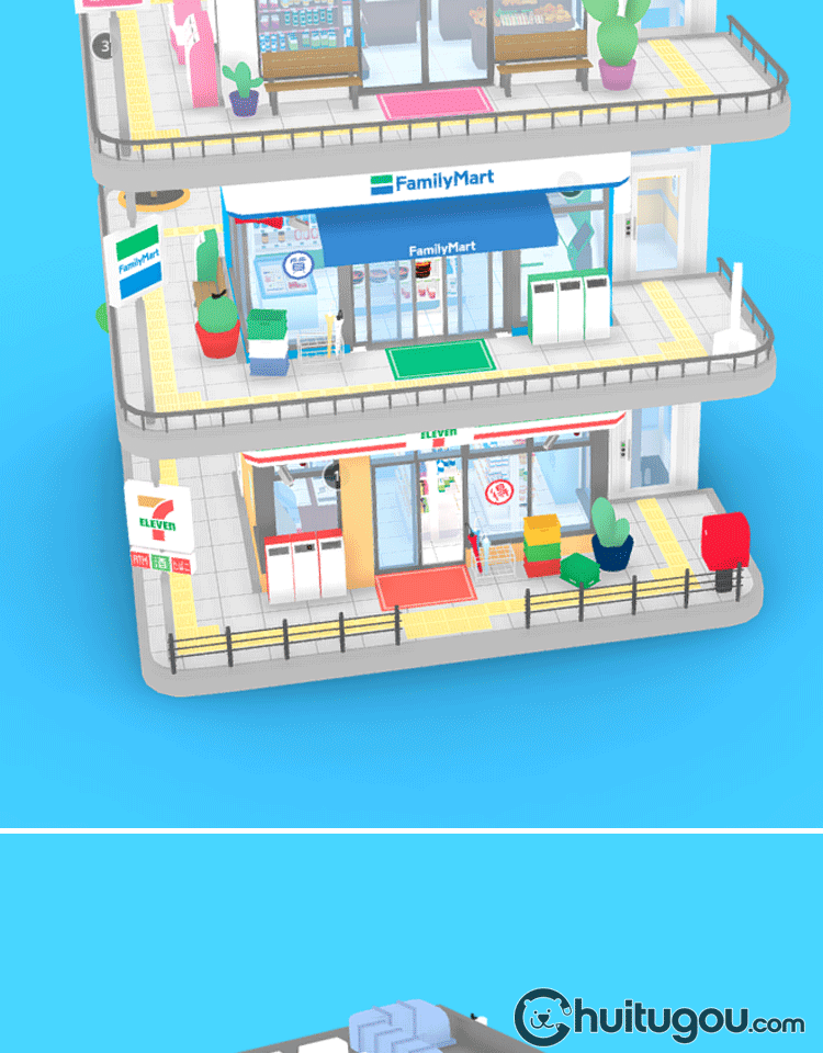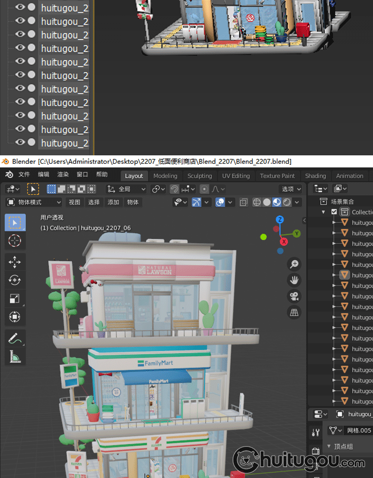 3D低面便利店Blender卡通商店C4D电梯MAX小超市货架FBX收银台零食