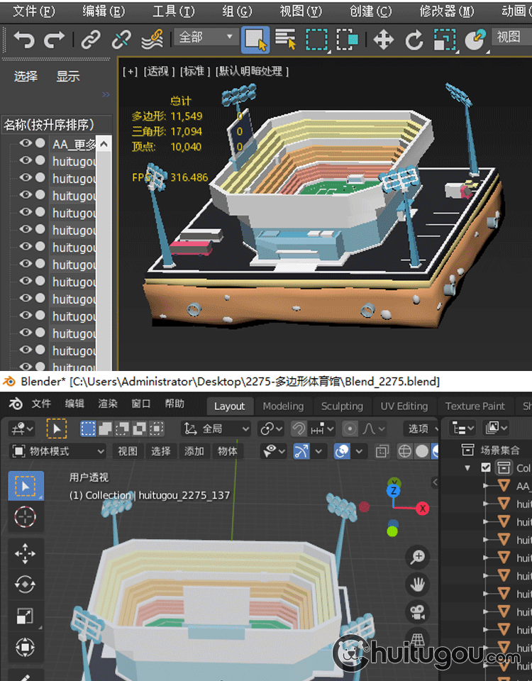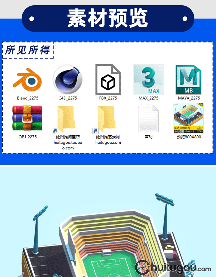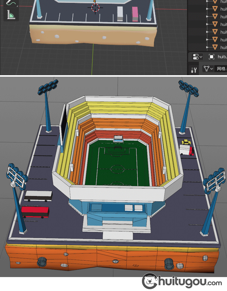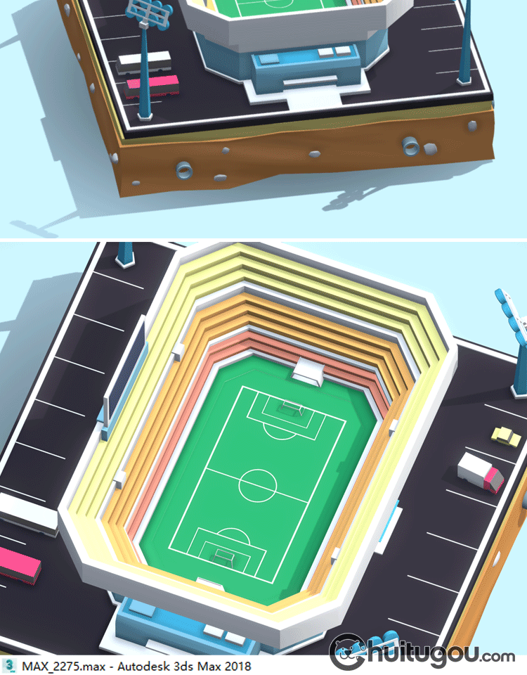 低面 城市体育馆C4D卡通体育场3D模型足球场3dsMAX格式mb素材文件