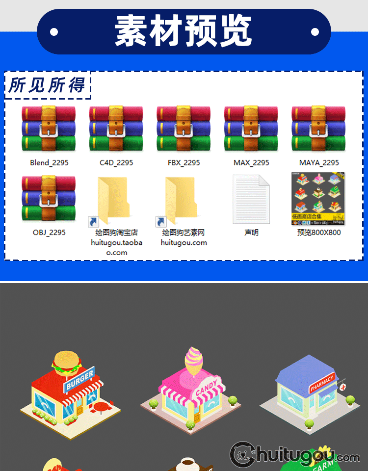 9个低面风格 商店C4D卡通商铺小店披萨汉堡便利店咖啡店糖果店OBJ