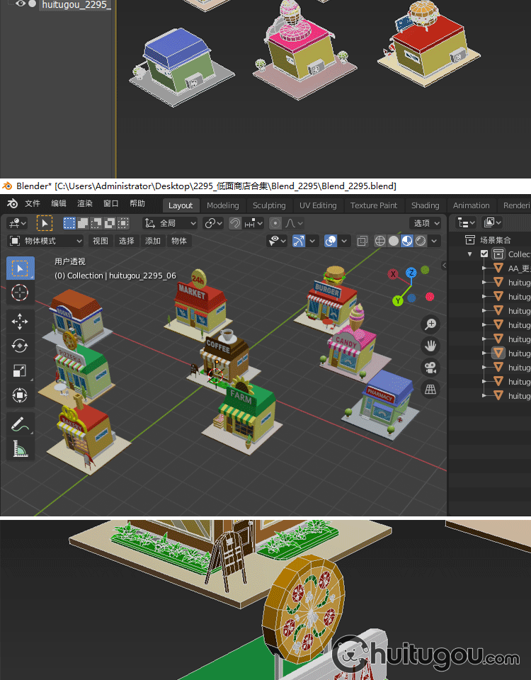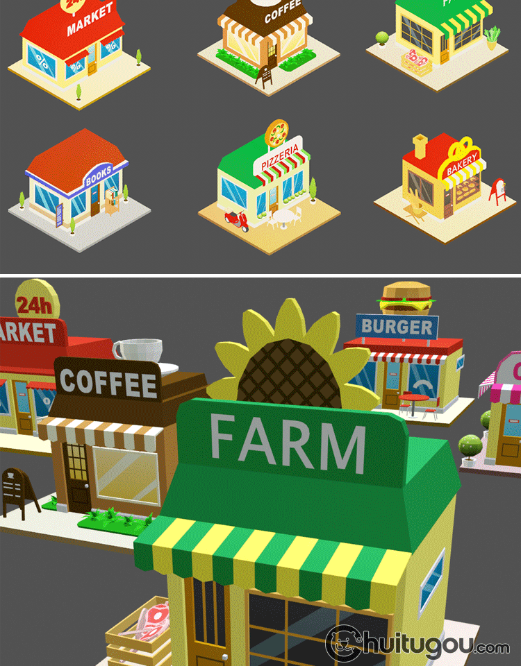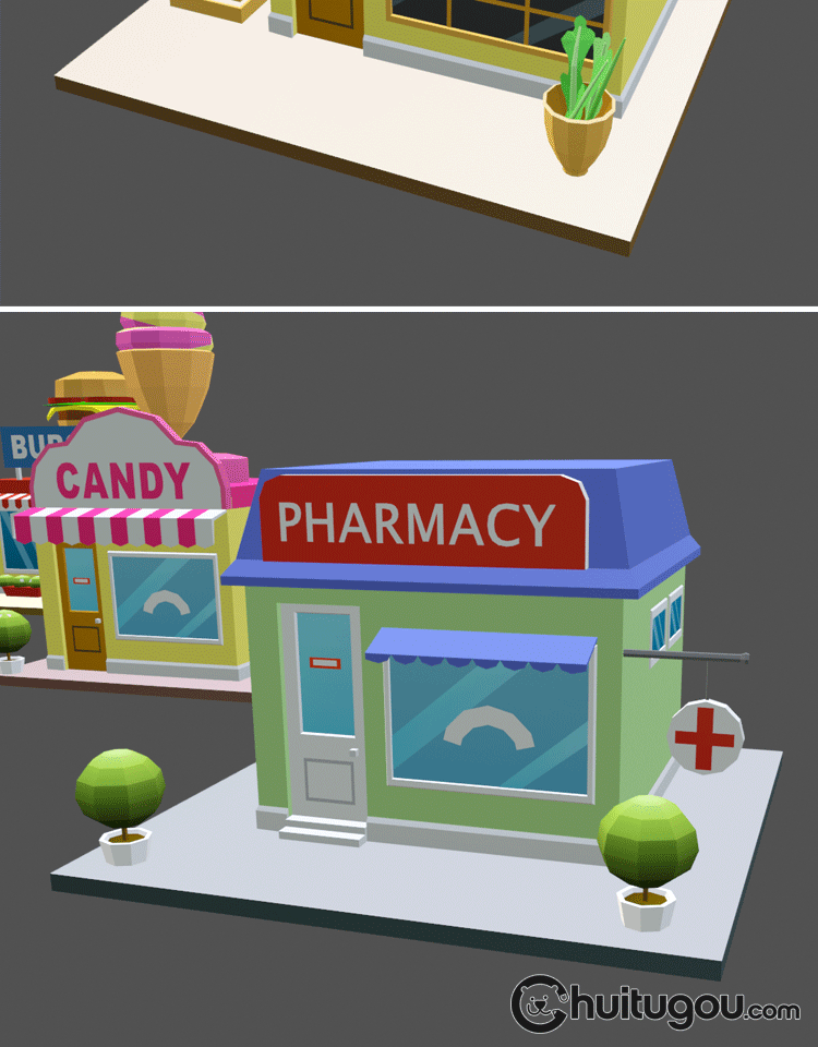 低面 卡通商店C4D模型Blender披萨店max咖啡店maya早餐店fbx obj