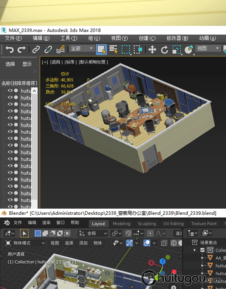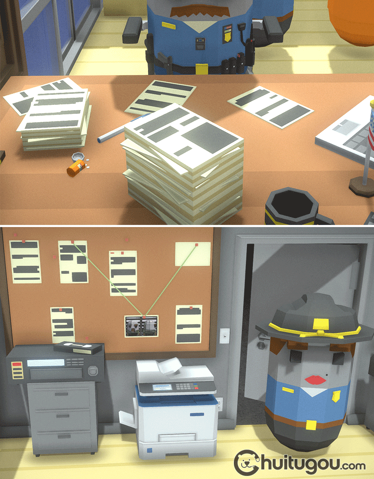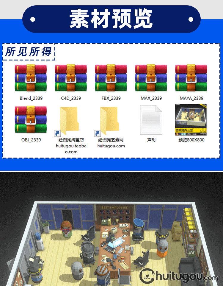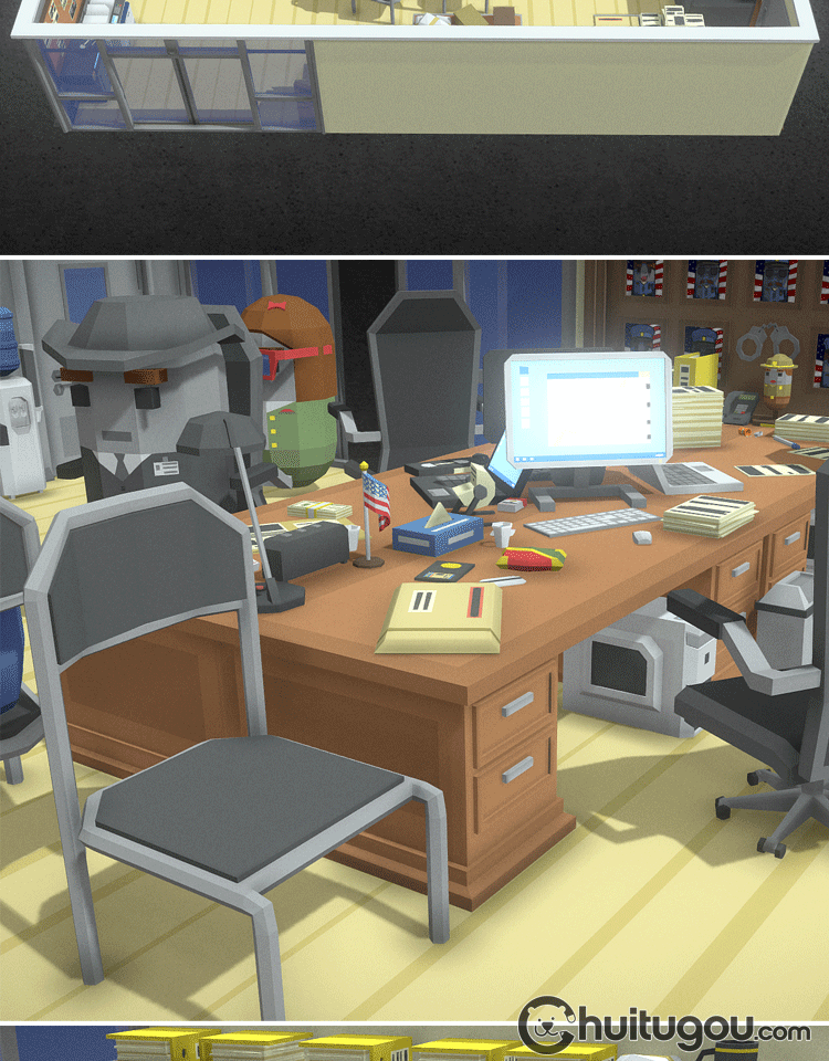 低面警察局模型Blender卡通办公室内部场景MAX桌椅文具纸盒文件柜