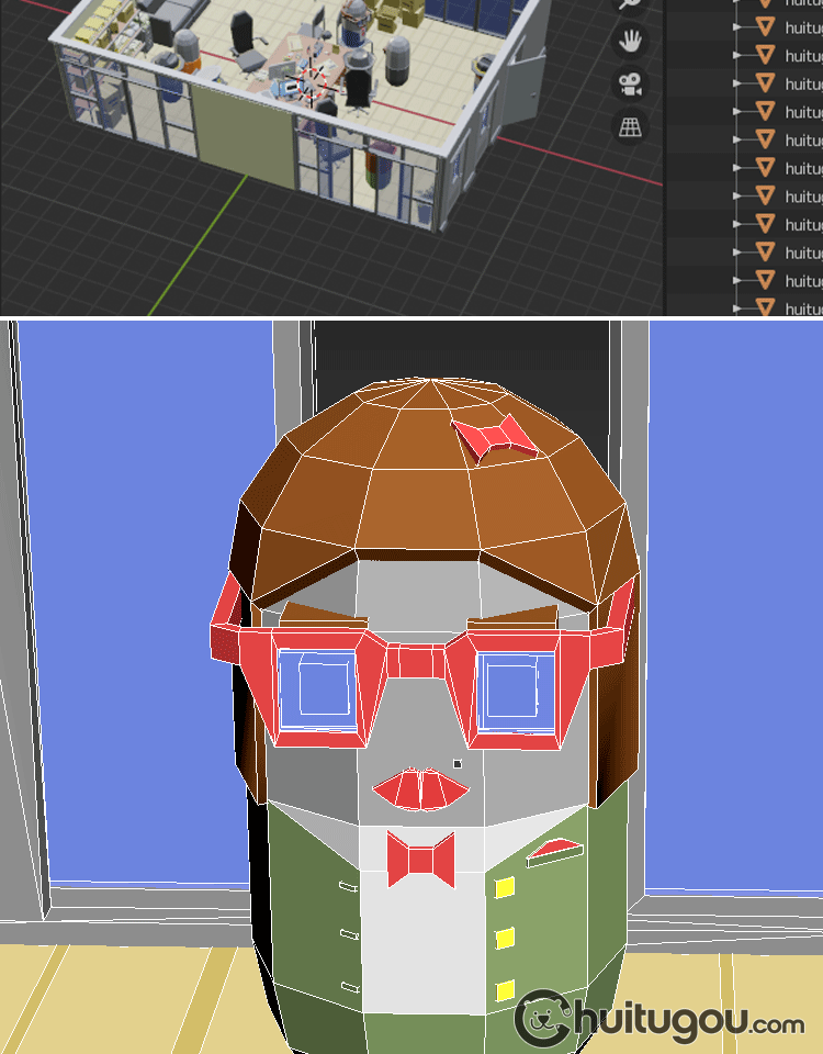 低面风卡通办公室C4D桌椅Blender工位文具货架仓库厕所文件柜FBX