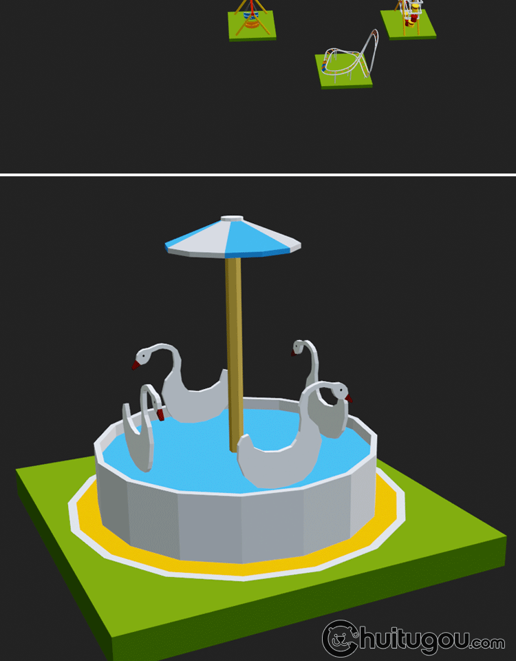 61款游乐场模型C4D儿童乐园泳圈滑梯船秋千木马攀岩FBX格式3D素材