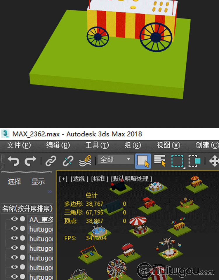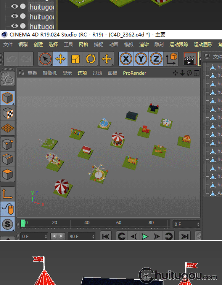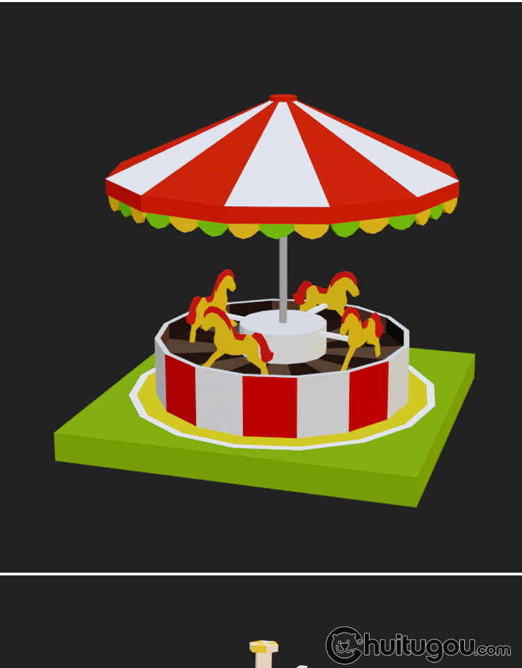 低面游乐场模型C4D卡通游乐园场景MAX摩天轮木马过山车3D设计素材