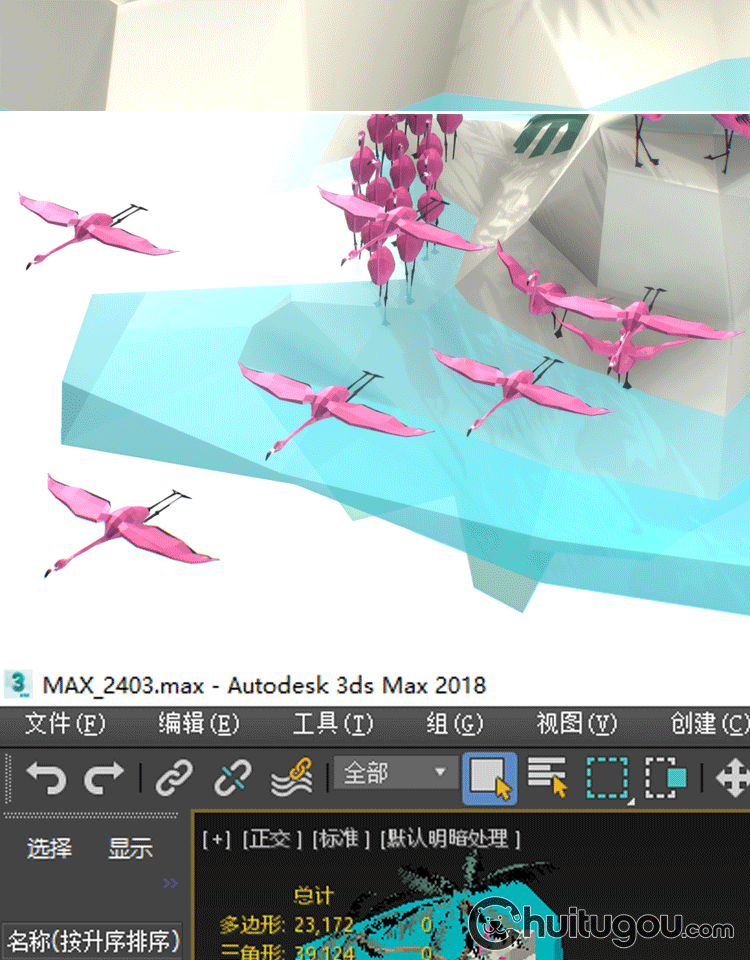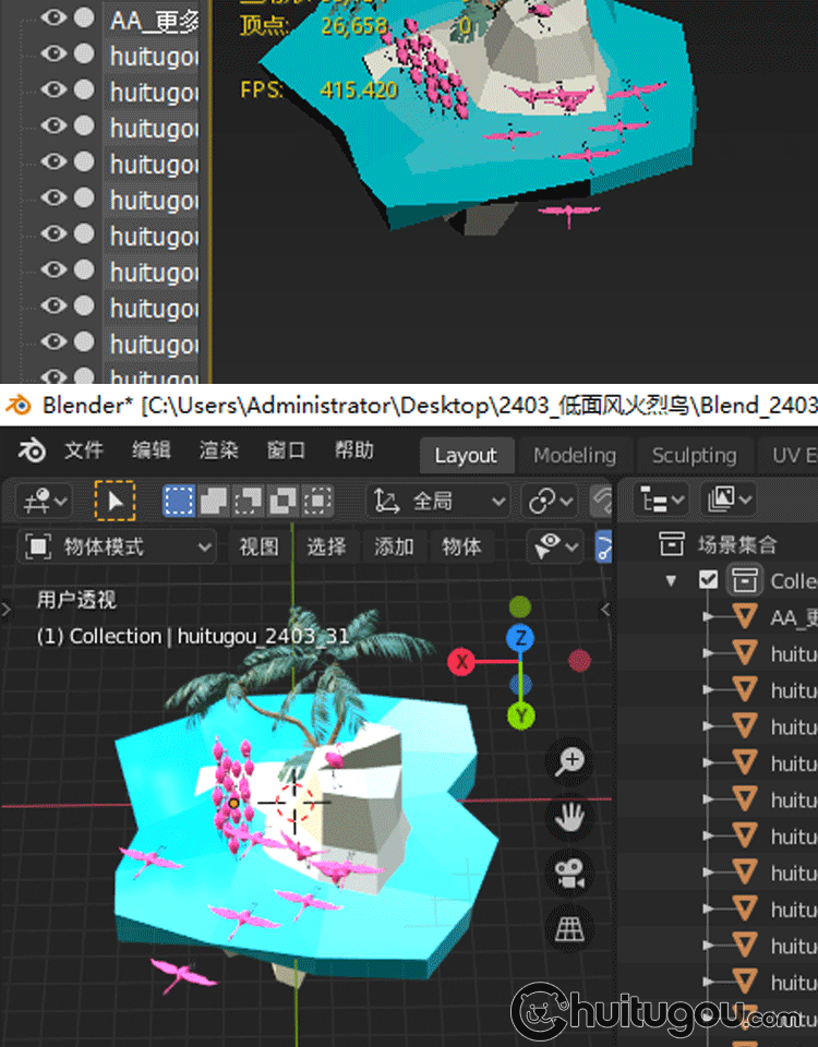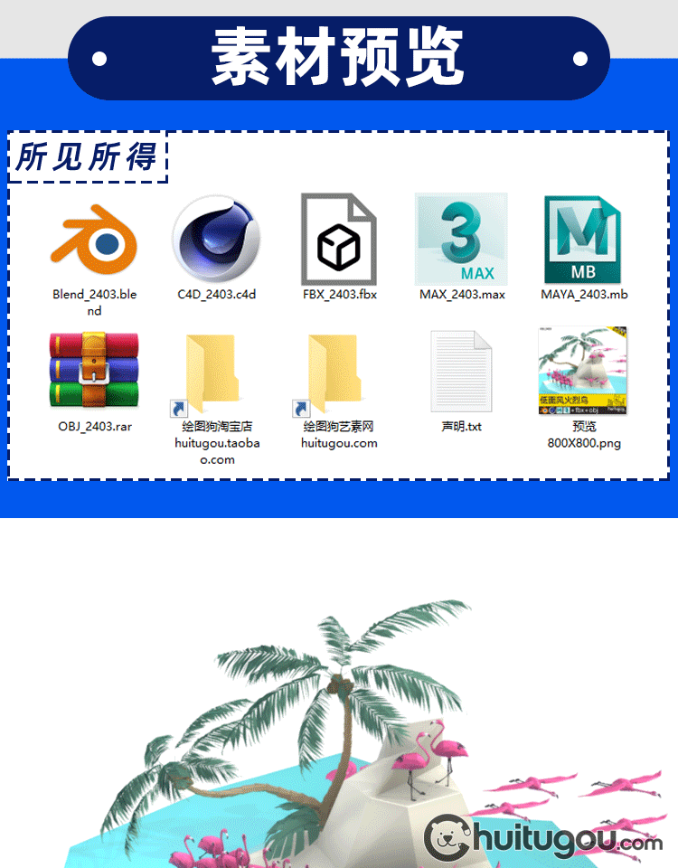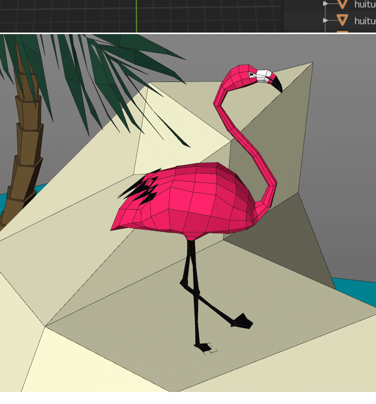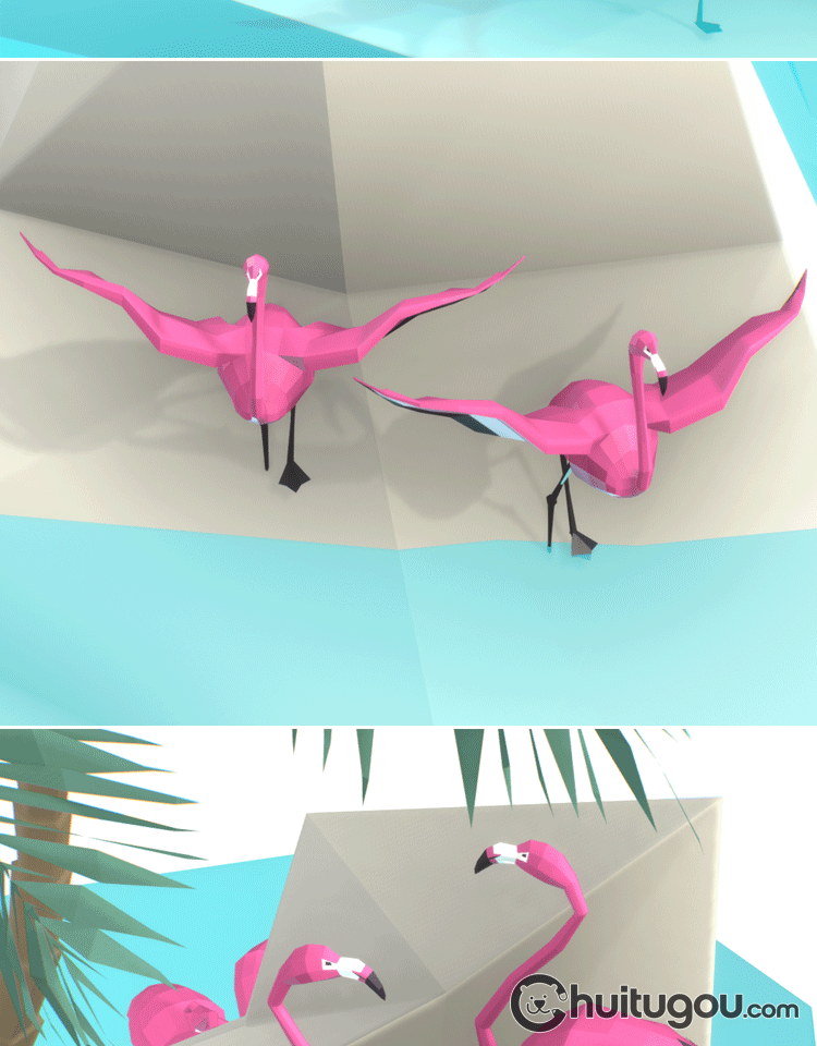 3D低面海岛火烈鸟场景C4D卡通鸟儿Blender椰树FBX鸟群MAX格式OBJ