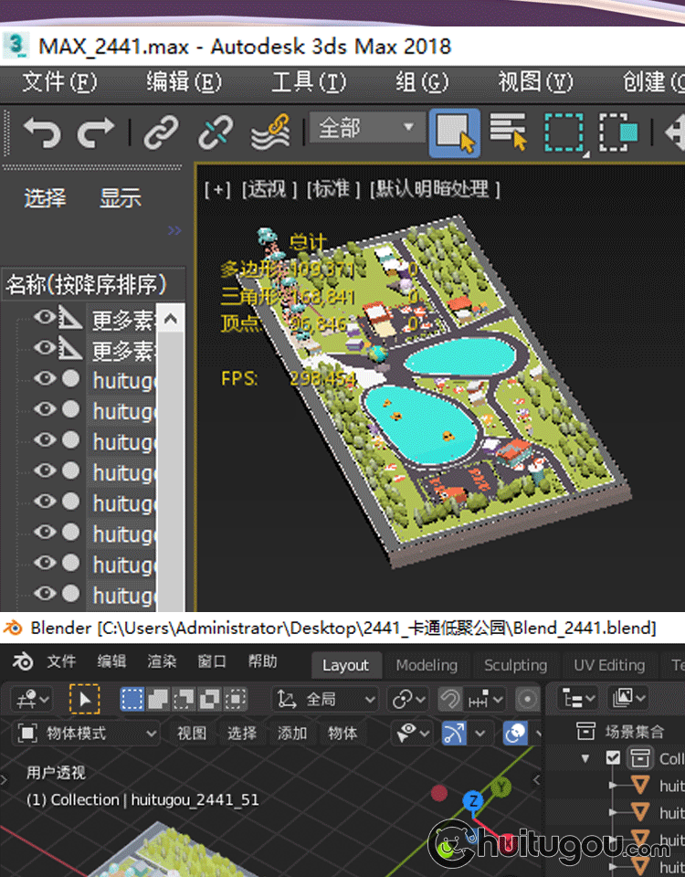 3D低面卡通公园乐园模型C4D游乐场场景FBX摩天轮商店MAYA素材OBJ