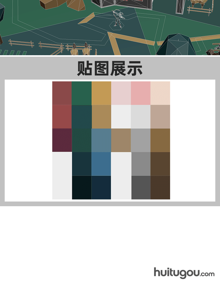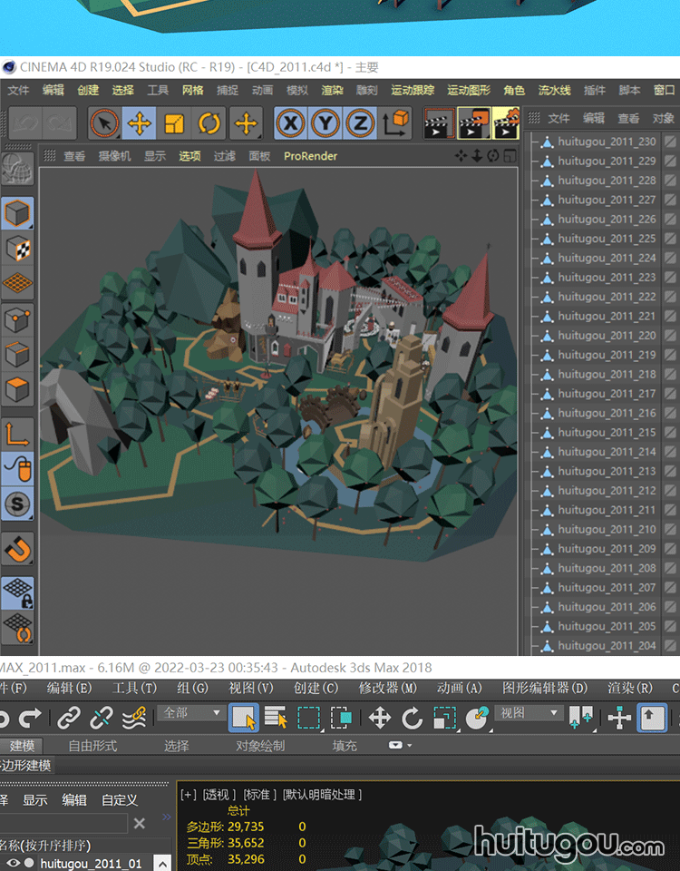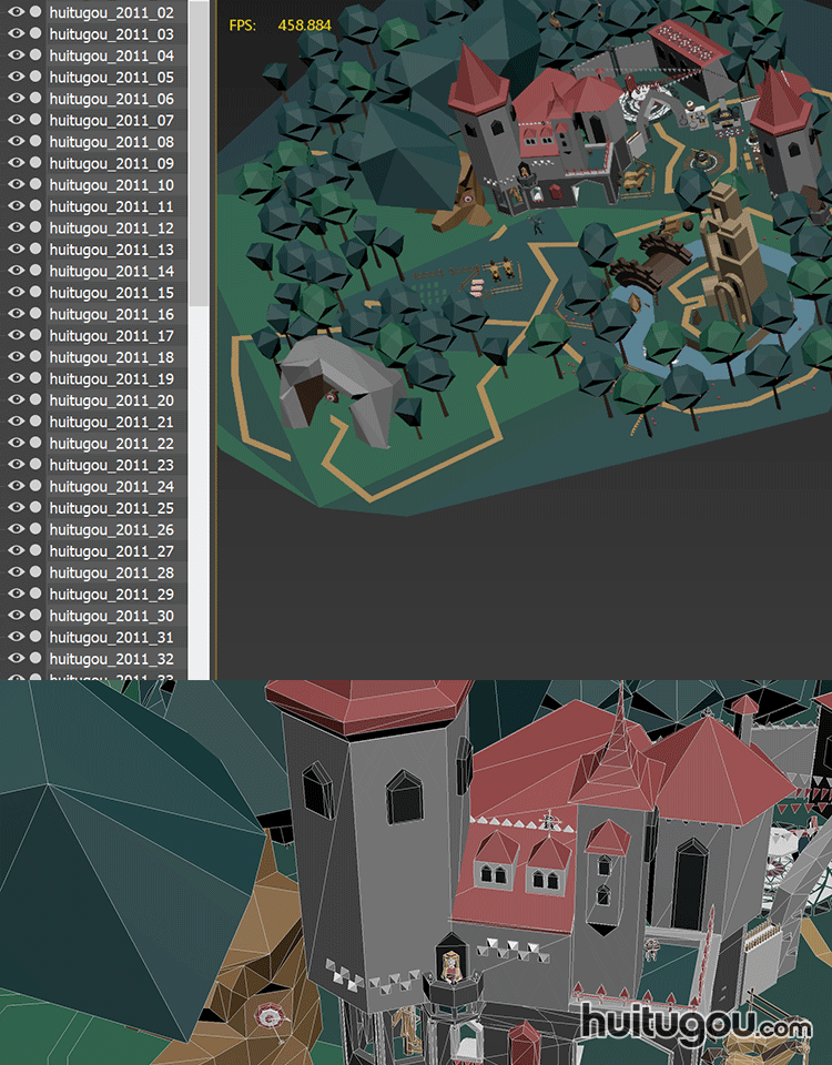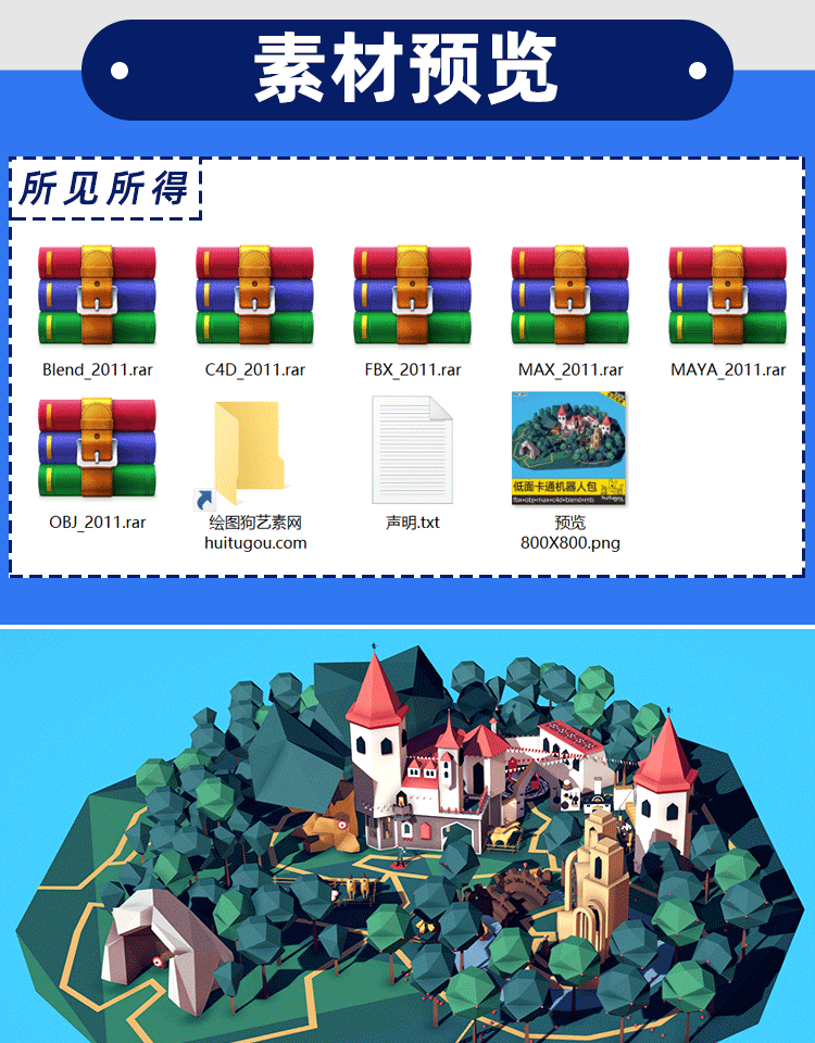 LOWPOLY风格 童话城堡村C4D模型Blender微缩场景OBJ mb MAX 素材