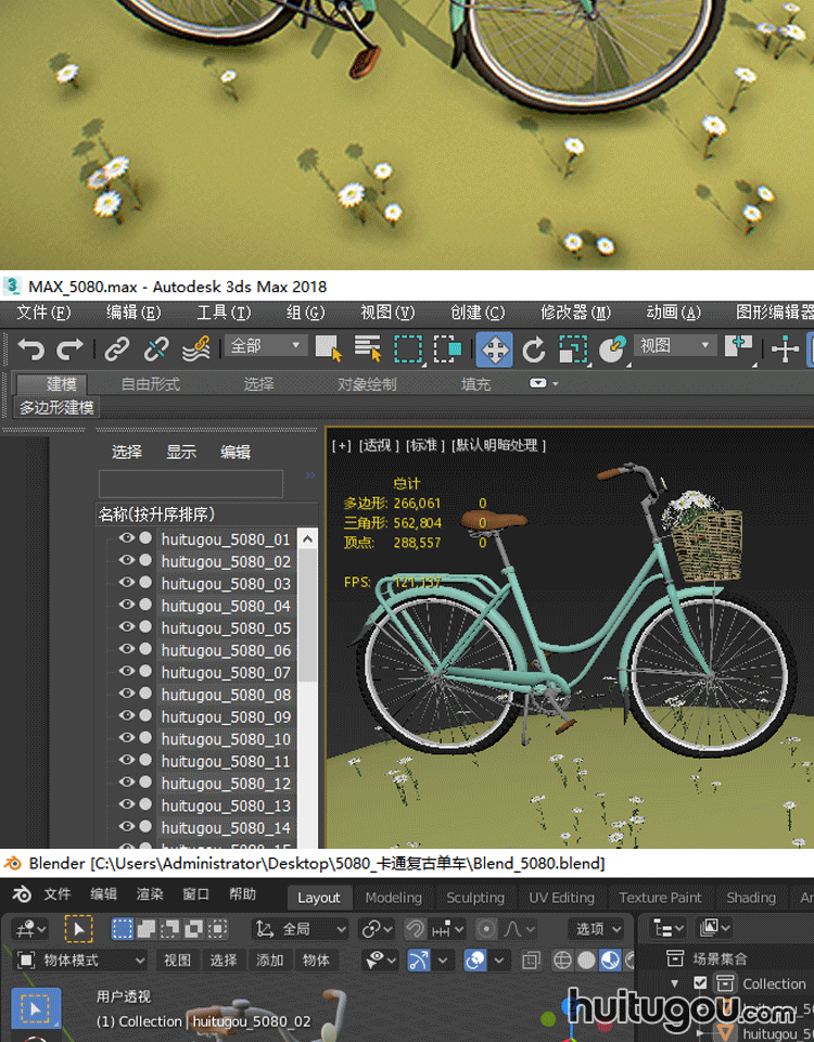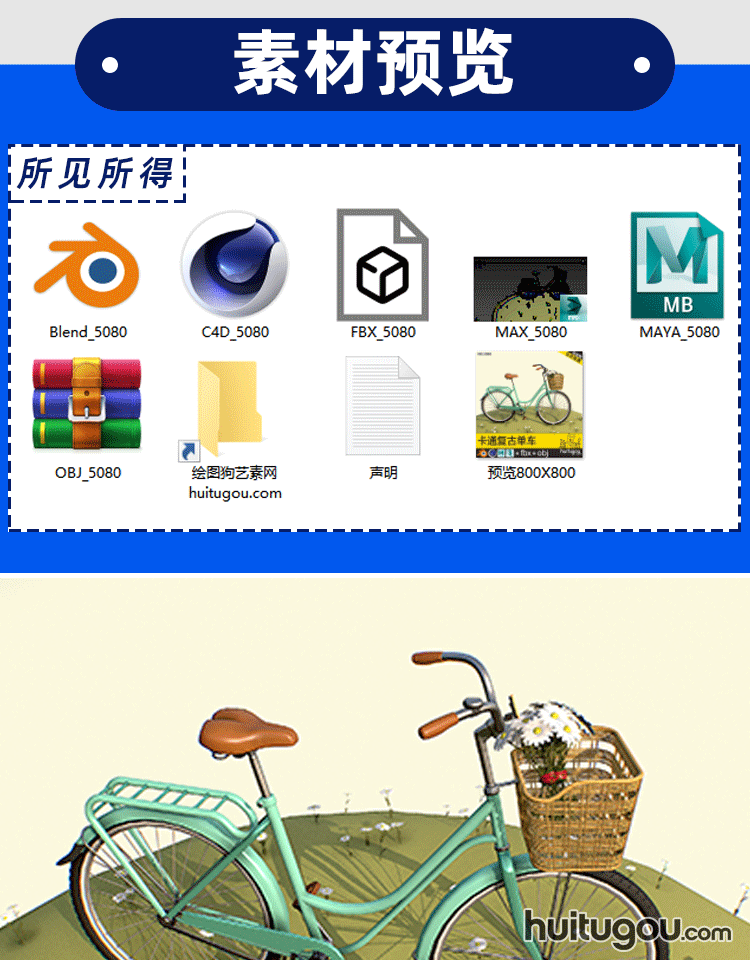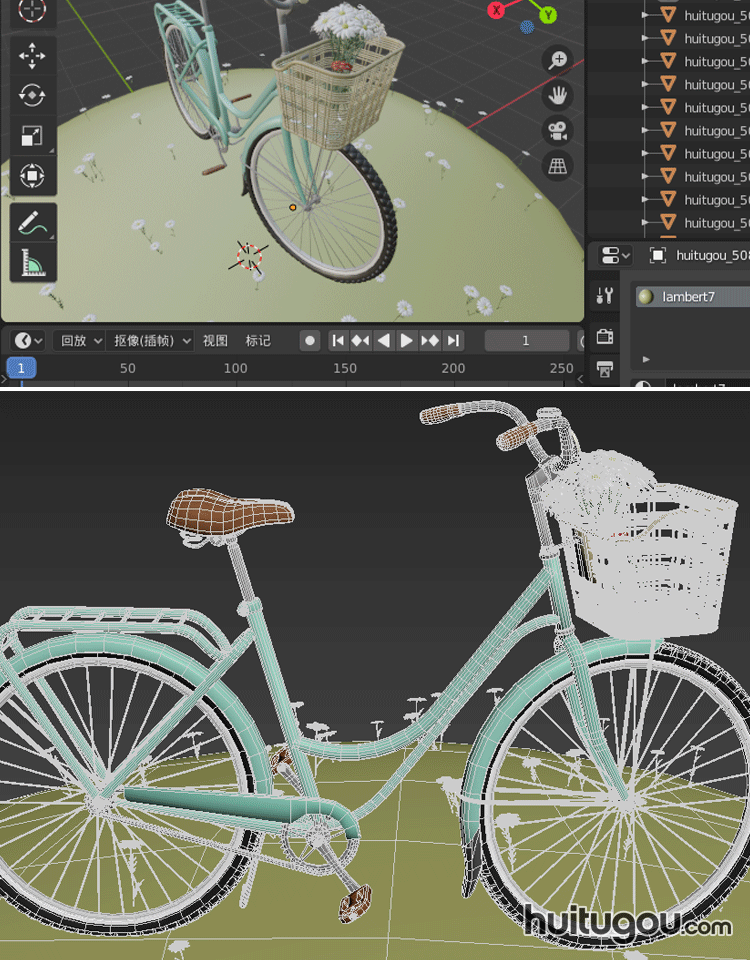 卡通复古浪漫单车场景C4D自行车菊花模型Blender MAX FBX OBJ素材