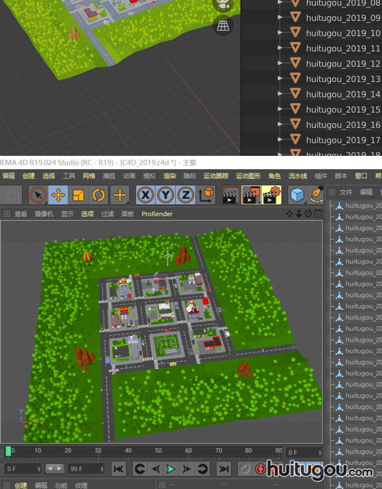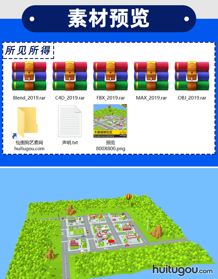 Q版城镇社区场景MAX小房子街道Blend卡通C4D FBX OBJ设计素材文件