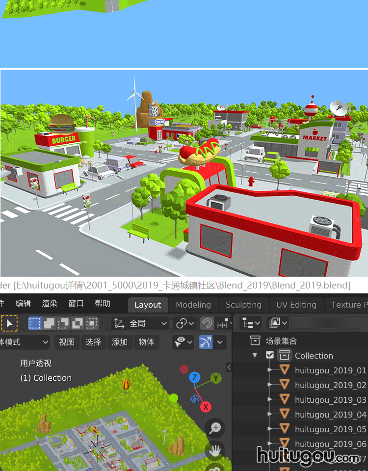 LOWPOLY 城镇社区场景Blend卡通商店球场公园C4D FBX OBJ MAX素材