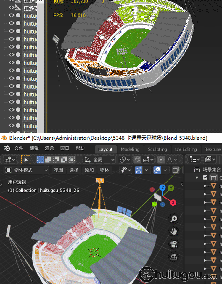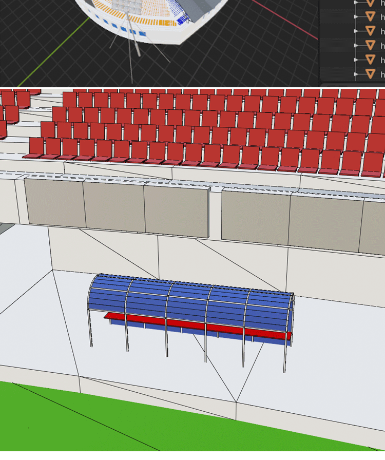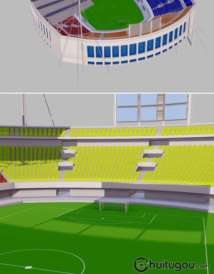 低面风格体育场C4D卡通露天足球场模型MAX遮阳棚FBX观众席路灯OBJ